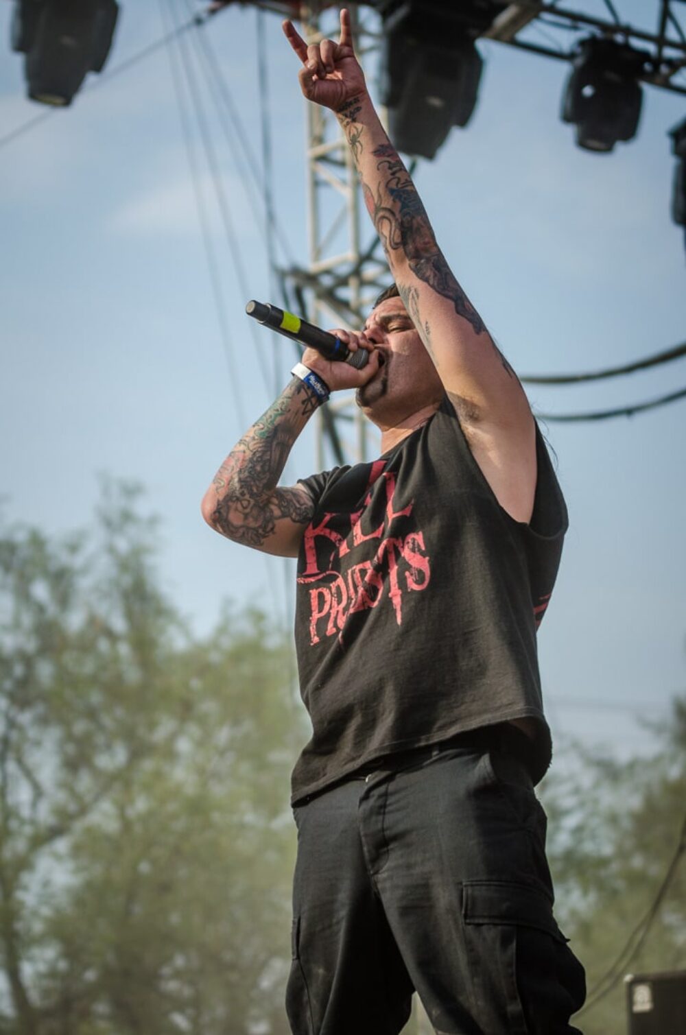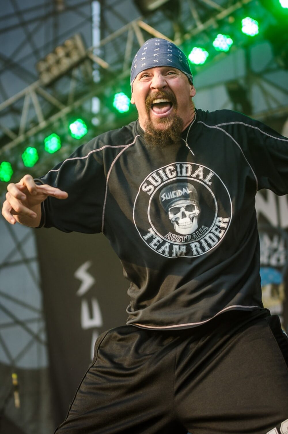 Tras litros de cerveza voladora y cúmulos de greñudos desmayados, los maestros del hardcore y el crossover aparecieron frente a la enorme manta que rezaba Suicidal Tendencies, arremetiendo con "You Cant Bring Me Down", "Institutionalized" y "Send Me Your Money", seguidos de un remolino de polvo producto de hasta tres circle pits simultáneos al ritmo de "Cyco Vision", "I Saw Your Mommy" y "Pledge Your Alliance". “!Dios mío, tenemos que regresar lo antes posible!”, gritó Mike, mientras pegaba de brincos por todo el escenario que sin previo aviso cambio el orden de bandas siguiéndole Testament y no Epica a su impecable presentación.