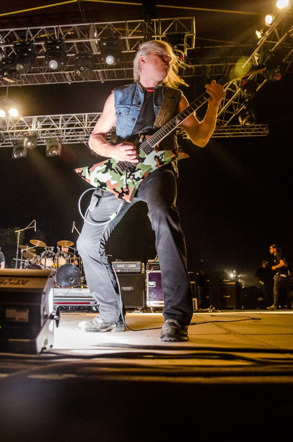 La noche sobre la explanada, la enorme pared de polvo aunada al juego de luces tras Tom, Bernemann y Markus creó un panorama que dejó sin aliento y enchinó la piel, y que de no haber sido por la llegada de Anthrax para recordar que se seguía en la Tierra y no en el inframundo, muchos hubieran quedado traumados.