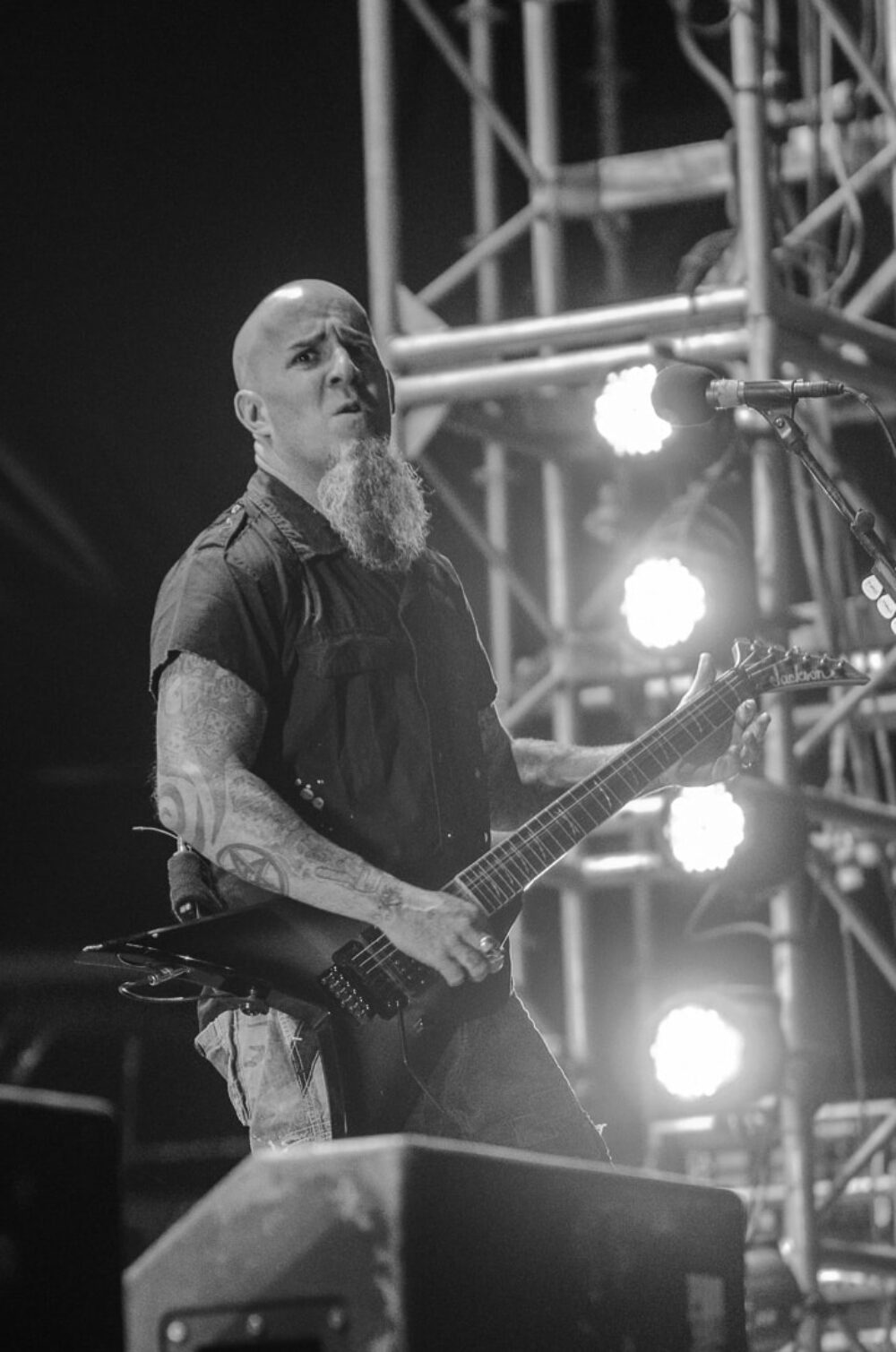 El carismático Joey Belladonna, quien brilló como el mejor frontman del evento, se acercó al publico y no dejó que ni por un segundo decayera la energía ni la velocidad: "Among The Living", "Indians", "Madhouse", "Antisocial", "N.F.L." y más clásicos. Sin perder el tiempo, Anthrax de igual manera rindió homenajes a sus hermanos caídos al tocar los primeros estribillos de "Raining Blood", original de Slayer, en memoria a Hanneman además de dedicar el tema "In The End" a Ronnie James Dio y Dimebag Darrell.
