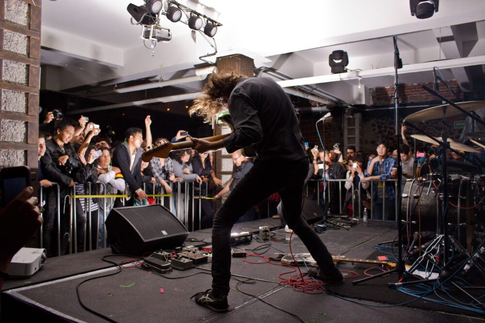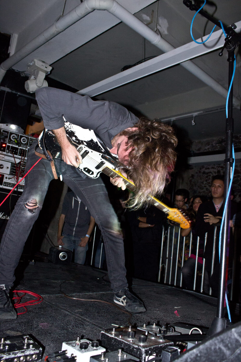 “Deadbeat” del Exploding Head fue la encargada de abrir el noisy y consigo un movimiento incontrolable de cabezas y brincos. Aunado a ella continuaron con “Onwards to the Wall”, tema de su último EP; el humo y psicodelia ya eran parte de los presentes, las luces, guitarrazos y batería tenían a todos cautivos, invitándolos hacia la destrucción, el caos.