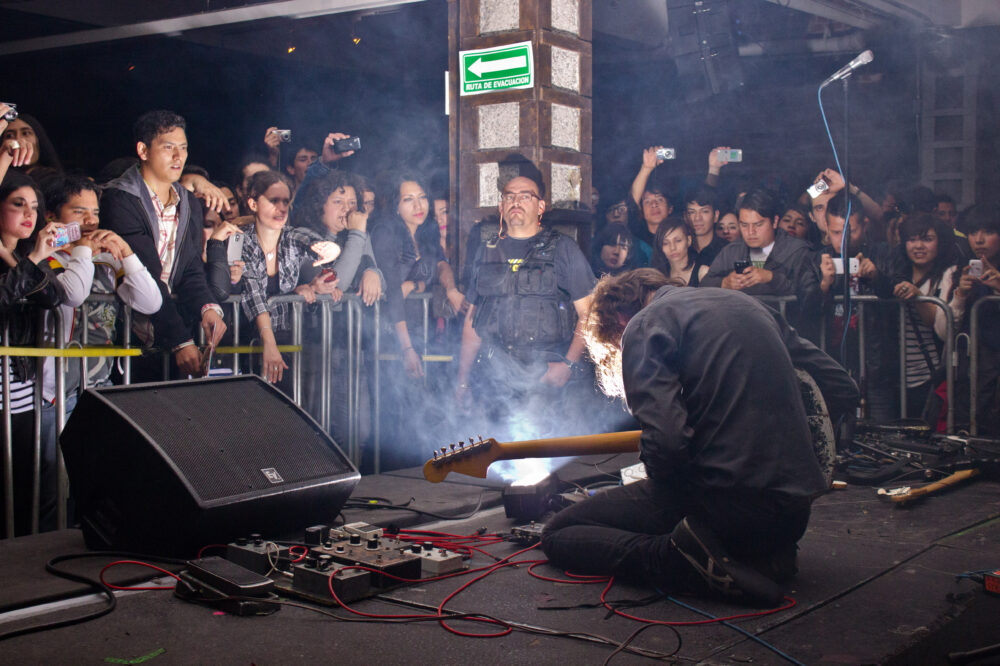 La sesión fotográfica estaba en su apogeo cuando, “I Lived My Life to Stand in the Shadow of Your Heart” fondeó todo Pasagüero. Este tema fue el encargado de cerrar la primera parte ¡y qué parte! pues las guitarras sucias y batería no pudieron sonar más fuerte, la parte de coro fue la oportunidad perfecta para que Oliver jugase con las luces, primero apagándolas, después tomando sólo una, poniéndola debajo de sí y comenzando a romper su guitarra, la prolongación, henchida de humo y movimiento, anonadación y grunge, sirvió para dejar a todos ¡frenéticos!