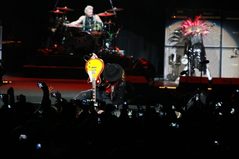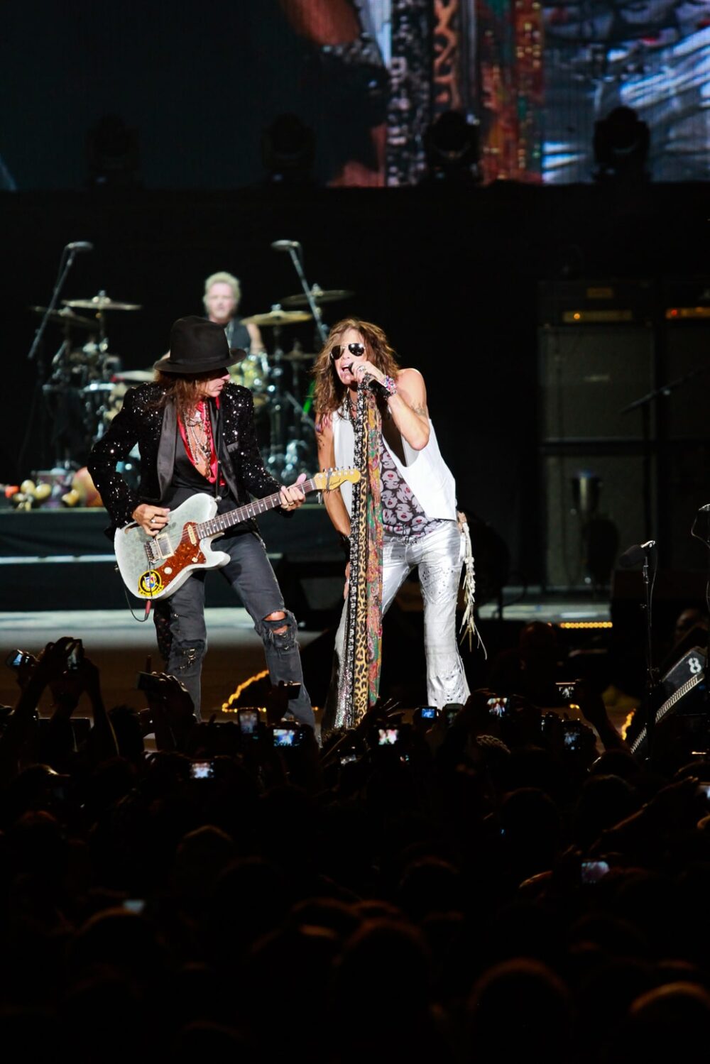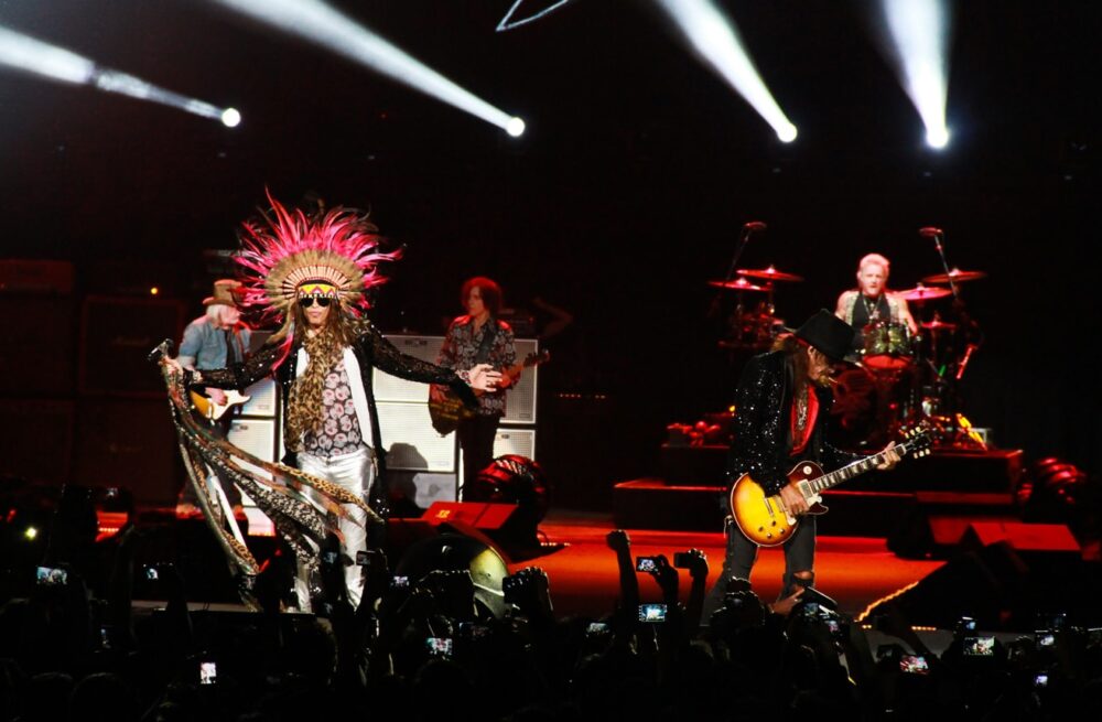 El set de la banda fue relativamente variado, siendo "Oh Yeah" la única pieza desprendida de su más reciente lanzamiento, Music From Another Dimention! Pero, a pesar de ofrecer clásicos como "Chip Away The Stone", "Back In The Saddle" y "Toys In The Attic", más dos grandes covers que la banda a tocado por más de cuarenta años de trayectoria, uno de Fleetwood Mac y otro de James Brown, el concierto tuvo un cierre un tanto bizarro al contar con pasos de baile y cánticos de nadie más y nadie menos que Gloria Trevi para "Walk This Way".