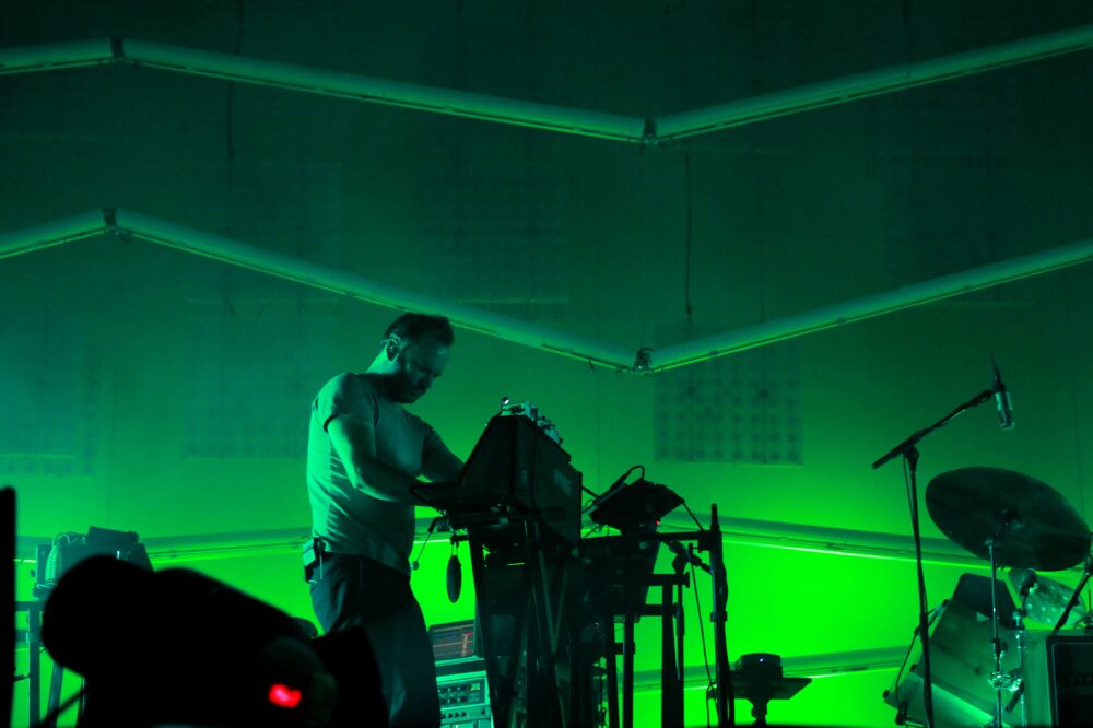 El primero en subir al escenario fue el artista y productor de música electrónica James Holden, que a comparación de su presentación dentro de MUTEK.MX hace una semana, incluyó un baterista en vivo y una enorme consola análoga. Entre IDM, techno, y lo que el mismo ha denominado como “trance”, proyecciones de dibujos y líneas de luz acompañaron su breve pero bien recibido set.