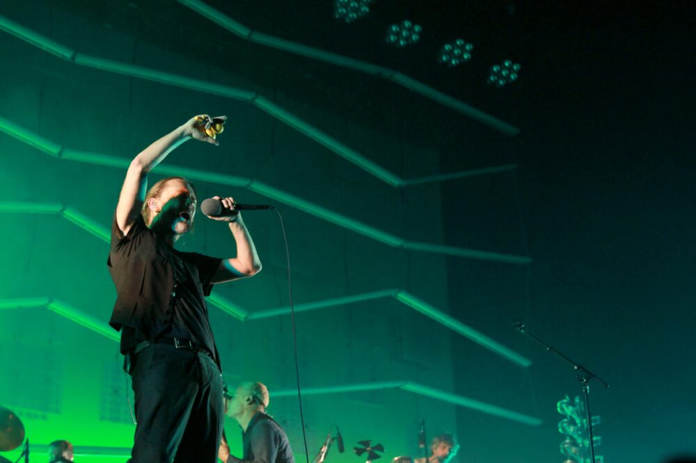 Pasadas las 21 hrs, las luces se apagaron para recibir a este conjunto de músicos en un recinto de localidades total y absolutamente agotadas. Mentiría al decir que la ovación principal no se la llevó Yorke; desde que toma su guitarra hasta sus chuscos y cómicos bailoteos. La gente aplaudió y celebró cada movimiento del artista en un punto casi histriónico. Sí se mueve a la izquierda, si sonríe, si se rasca, si se acomoda la playera ¡aplausos! Una marcada sonrisa por parte de los músicos e interpretes sobre el entarimado fue sucedido por una magistral rendición a no solo temas del único disco de este grupo, AMOK, sino a varios de los cortes del álbum solista de Thom Yorke, The Eraser. Mención especial a “Rabbit in Your Headlights” original de UNKLE, que para muchos fue un sueño hecho realidad el poder escucharla en vivo.
