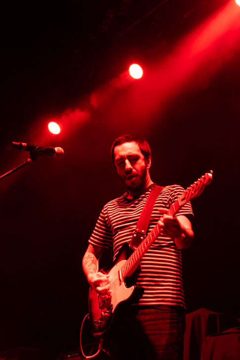 Sigue “Fossils”. Ni siquiera hay un fondo detrás del escenario. Sin embargo, no es necesario. El juego de luces es suficiente para que nosotros pongamos el ambiente cantando a todo pulmón: “The one day I want something I just can’t get. I’m a long way from home”. “Movies” marca el inicio de la locura. El baile comienza y la emoción comienza a crecer. Al finalizar la canción, el vocalista, Kieran Shudall sonríe genuinamente y nos pide bajar y quedarnos en cuclillas, para luego brincar lo más alto que podamos al iniciar “Get Away”. En cualquier otro lugar y concierto, esto hubiera sido un problema, pero lamentablemente El Plaza estaba a la mitad de su capacidad. Por lo tanto, no tuvimos problema en cumplir su petición y brincar a alturas que no sabíamos que podíamos.