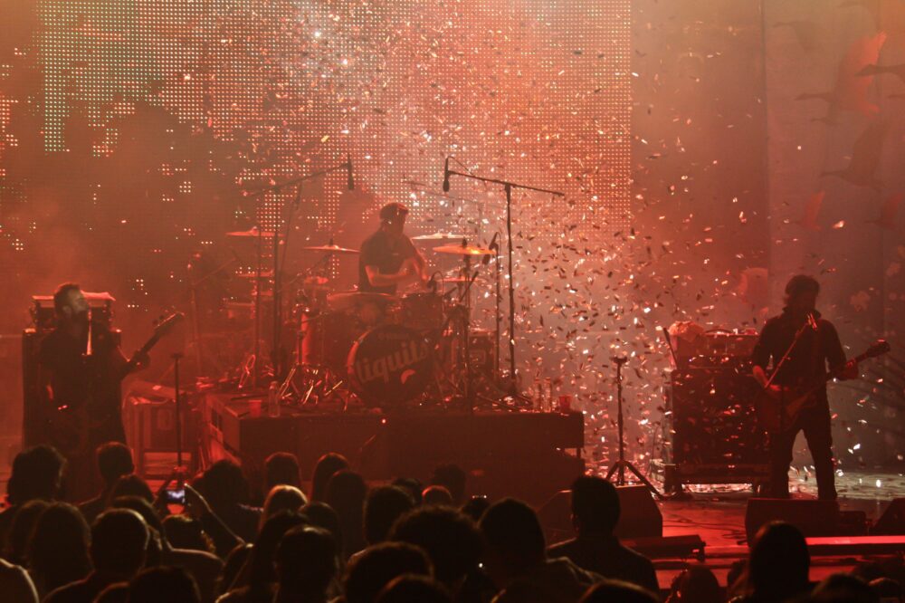 Después de la tercera llamada, el escenario se iluminó y aparecieron Edi (bajo y voz), Teo (batería) y Ro (guitarra y voz), para interpretar “Chido”; niños, jóvenes y adultos cantaron y bailaron a lado de esta divertida agrupación originaria de la Ciudad de México. Liquits complació a su público con temas más recientes, hasta los que los lanzaron a la fama como “Desde que”, “Te comes lo que dices” y “El oso carpintero”. El clímax llegó cuando los primeros acordes de “Jardín” se escucharon y todos los asistentes alucinaron con las oníricas letras.