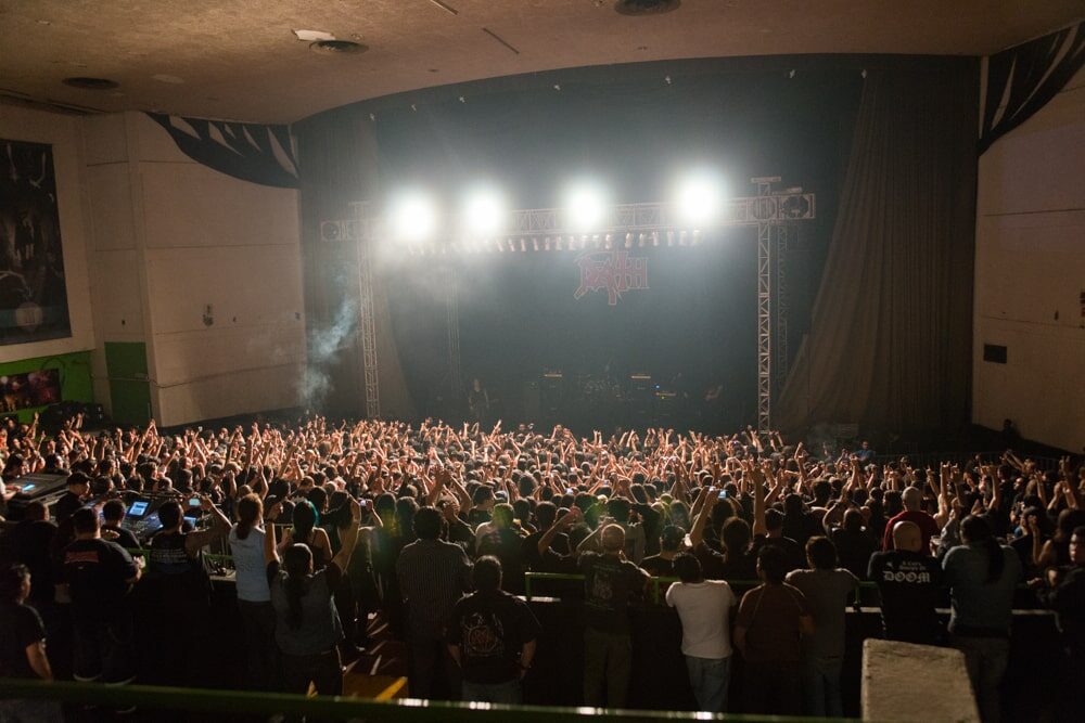 Un mar de cabelleras con los brazos en alto y un letrero frente a ellos con una hoz y una cruz que se traducía en “Muerte”, el panorama en el Circo Volador la pasada noche de lunes dejaba sin aliento. Luces apagadas y fúricos gritos que reclamaban una y otra vez “¡Muerte! ¡Muerte! ¡Muerte!” y es que son pocos los conciertos donde una banda regresa de la tumba para reclamar lo que una vez fue suyo: Death resucitó frente a nuestros ojos.