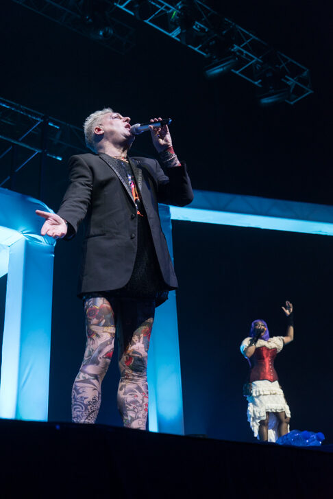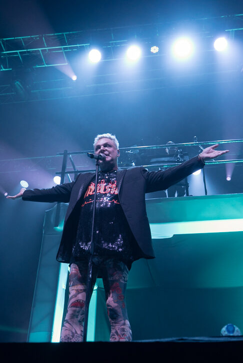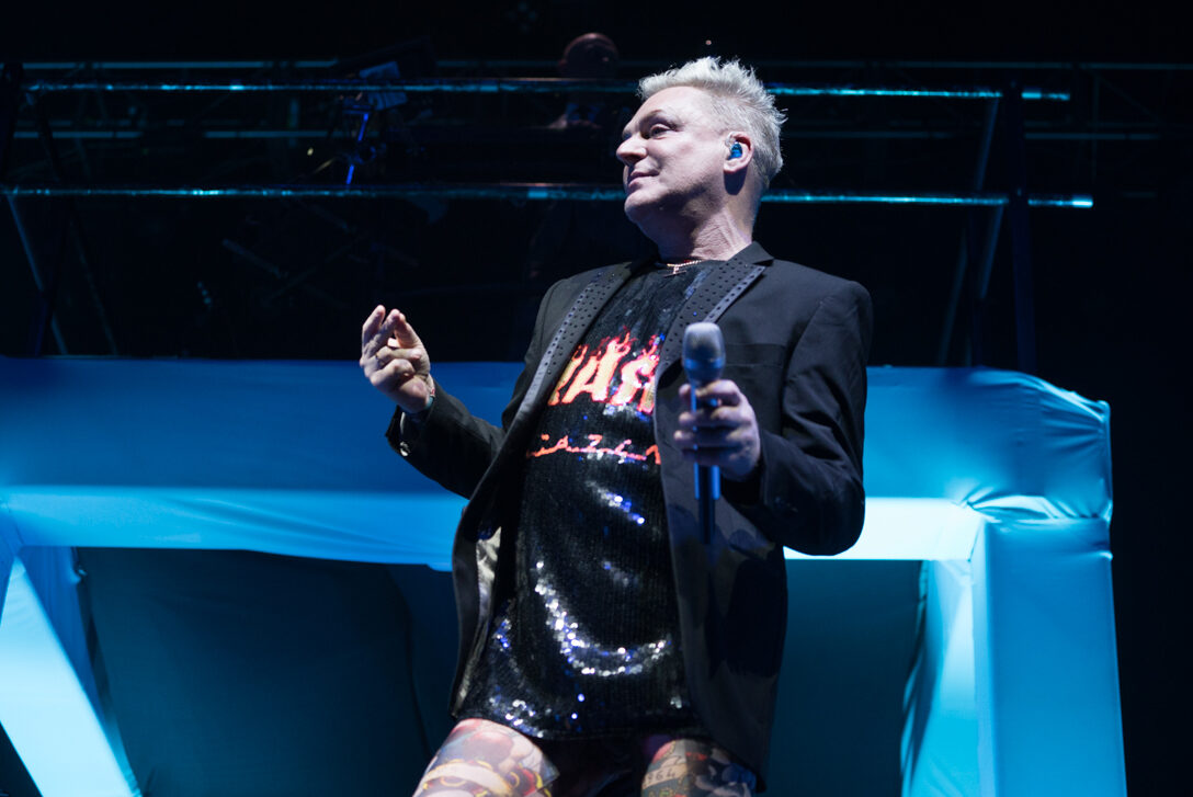 Corría un río de sudor, y sin aviso o antelación Andy Bell decidió quedarse en lo que antes pensábamos que eran unos mallones y estábamos equivocados. Un body color piel lleno de “tatuajes” delineaba la silueta del cantante y aunque el paso de los años era notorio, su alma transpiraba vida el día de su cumpleaños 53.