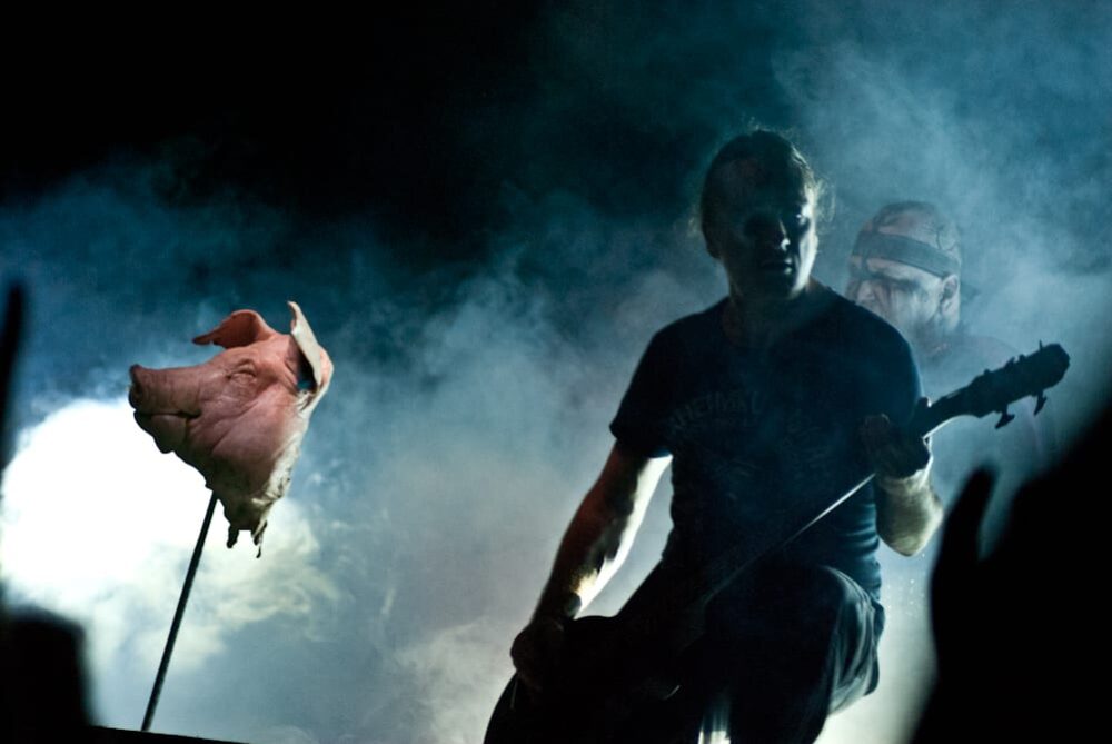 Terminada la actuación de las bandas teloneras, los técnicos prepararon el escenario con cuatro cabezas de puerco reales, mantas con el logo de la banda y monitores frontales. Ya entrada la madrugada del lunes, al grito de “¡Mayhem! ¡Mayhem!”, las luces se apagaron y uno a uno la banda tomó escena: Nectrobutcher y el mismo Attila, quien vestía como si fuera un sacerdote satánico, fueron los últimos en salir para inmediatamente empezar con “Pagan Fears” y dar por iniciado este rito único en su tipo.