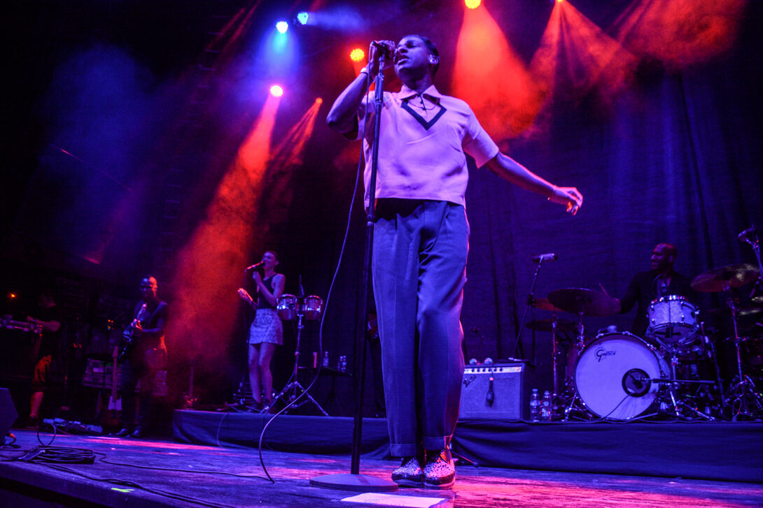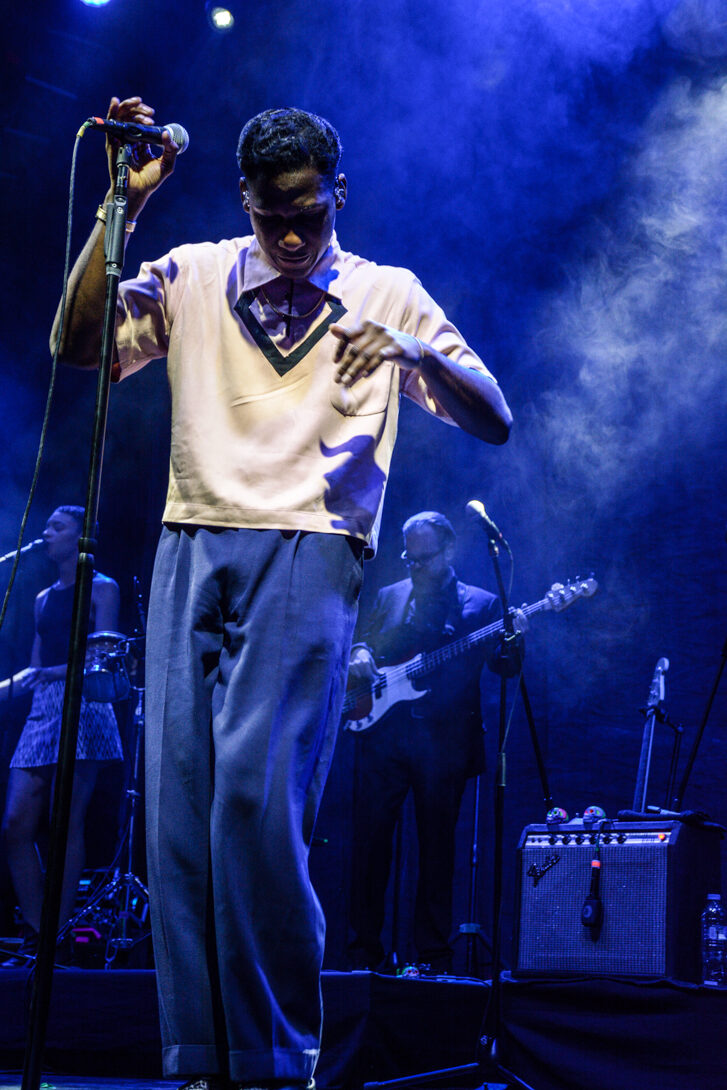 21.15hr Rico Allen (batería); Erskine Hawkins (sintetizadores/dirección musical); Kenny Wayne (guitarra); Andrew Skates (bajo); Brandon Thomas (guitarra); y Brittni Jessi (coros y percusión) ocupan sus lugares en el escenario, y tras una breve introducción Leon Bridges (guitarra y voz principal) aparece con su figura impecable de dandy arrancando una gran ovación que no se detendrá a lo largo de la noche.