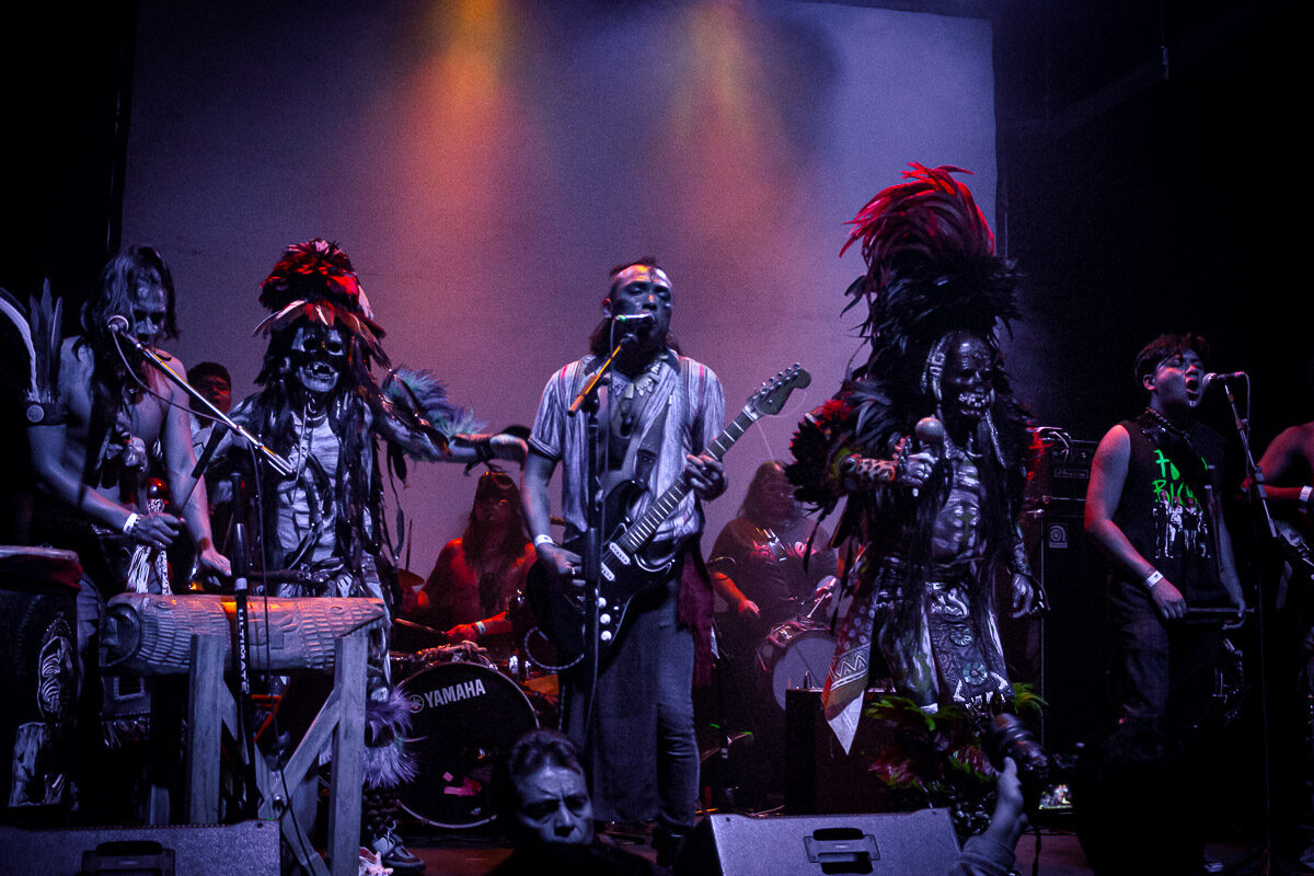 Al terminar esta presentación, el staff de escenario comenzó una odisea para posicionar todos los elementos necesarios para el concierto estelar. Los instrumentos autóctonos anunciaban la llegada de los guerreros de Neza, quienes estaban listos para librar una batalla contra inmovilidad corpórea y el olvido de nuestras culturas originarias. Los Cogelones subieron al escenario guiados por el sonido de una concha y la bruma generada por el incienso y las máquinas de humo, cada uno portando sus marcas de guerra.