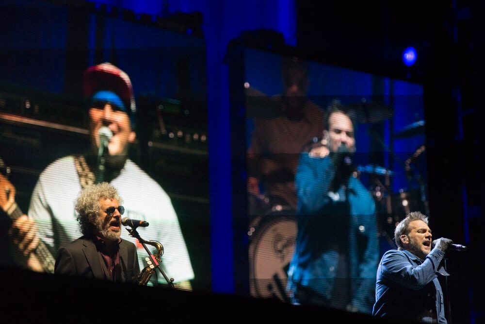 Una vez sobre el escenario, el primer indicio sobre la reunión fue la canción con que abrieron. “Yo no me sentaría en tu mesa” es usualmente su gran cierre, pero aquí comenzaron saltando abrazados como fabulosos amigos. A partir de ahí se soltaron con un setlist lleno de éxitos; “La luz del ritmo”, “Demasiada presión” y “El aguijón” calentaron motores.