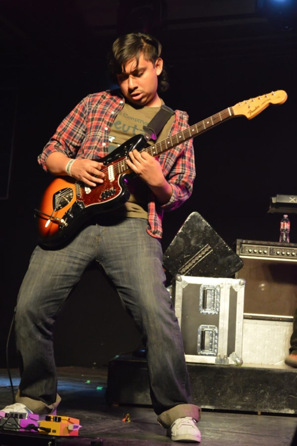 Al rededor de las 21 horas, el primero en subir al escenario fue Sugar Brown quien únicamente acompañado por una guitarra acústica, trato de calmar un poco al público que ya se encontraba desesperado por que iniciaran las actividades.