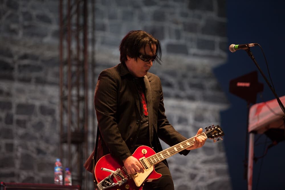 El concierto previsto para dar inicio a las 8 PM se vio retrasado por la lluvia que azotó al recinto, entre recomendaciones de protección civil y disculpas por los inconvenientes, sin previo aviso, cuatro sujetos vestidos de negro arribaron al mismo entarimado que hace poco más de un año recibió a Patti Smith en su primer visita a la Ciudad de México.