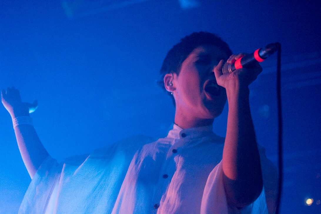 El sonido estuvo a la altura y Fran se adueñaba del espacio innegablemente, la luz baja y unas líneas de luces, a veces azules, a veces blancas, de momentos rojas o violetas, más la cantidad de humo que aparecía, resaltaban la silueta de la artista, lo que estábamos viendo era congruente con lo que estábamos escuchando.