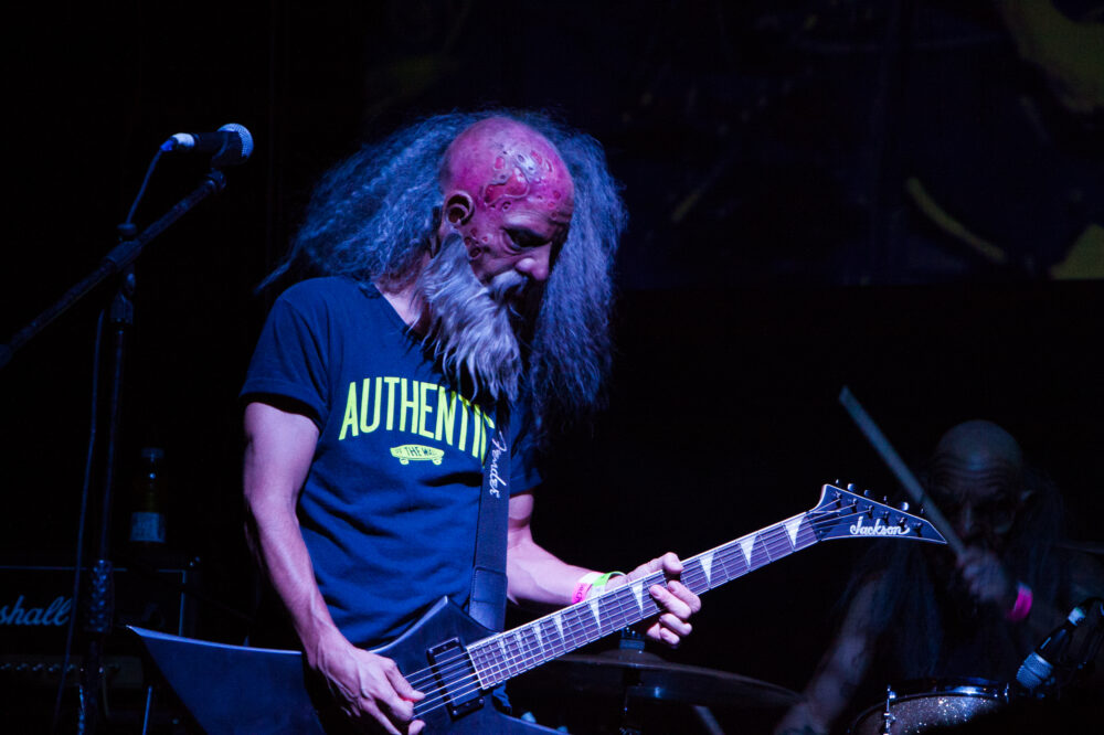El telón se hizo a un lado para dar paso al sólido set de apertura de Terror Cósmico. La fuerte distorsión rebotaba en los vitrales y hacía estremecer la duela del segundo piso. La banda abrió con material de su primer trabajo: Muerte y Transfiguración, una serie de piezas instrumentales ancladas en el metal progresivo y el alto volumen. Ese fue el banderazo inicial de un gozoso ensordecimiento que se prolongaría toda la noche.