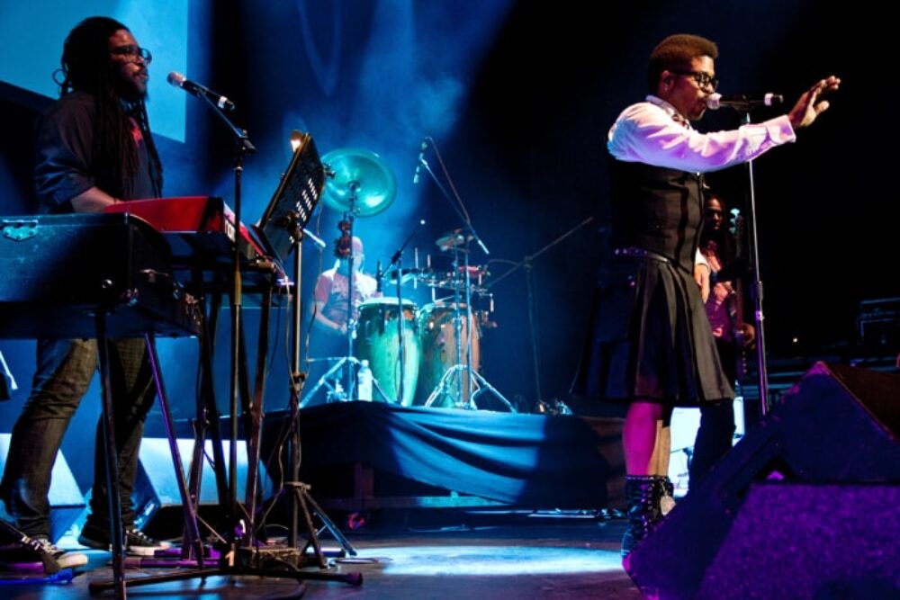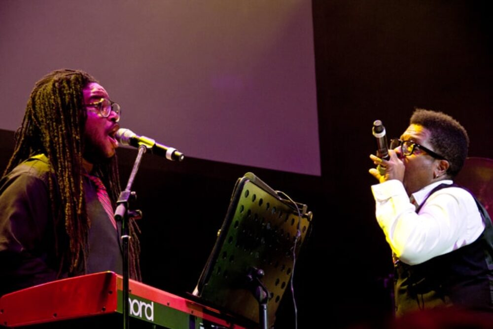 El público se dejaba arrobar por las palabras disparadas desde el megáfono de Carballo; y justo cuando pensábamos que ya lo habíamos escuchado todo, llega una re-composición del ya conocido tema de los Beastie Boys: “Sabotage” interpretada en náhuatl, cerrando con broche de oro ésta memorable presentación. Sin embargo no debemos olvidar que la participación de Arreola + Carballo sólo fue el inicio de esta gran noche en la que “El Plaza” se convirtió en una verdadera fiesta llena de color, con un escenario plagado de grandes talentos, con la presencia de los Screaming Headless Torsos, quienes abrieron con el tema “Vinnie”, seguido de un efusivo saludo por parte de Freedom Bremner (vocales) quien contagiado por la energía del público entregó todo desde el principio, haciendo evidente su admiración por México; la interacción constante con los fans logró momentos realmente efusivos, presentando “Field of Light” un tema de su nuevo material que nos recuerda aquel soul funk neoyorquino de principios de los 80, en el que homenajearon a la leyenda del funk George Clinton alias Dr.Funkenstein; fue una presentación llena de sorpresas, en donde cabe destacar la presencia de un coro barítono de jóvenes mexicanos quienes demostraron su profesionalismo al máximo.