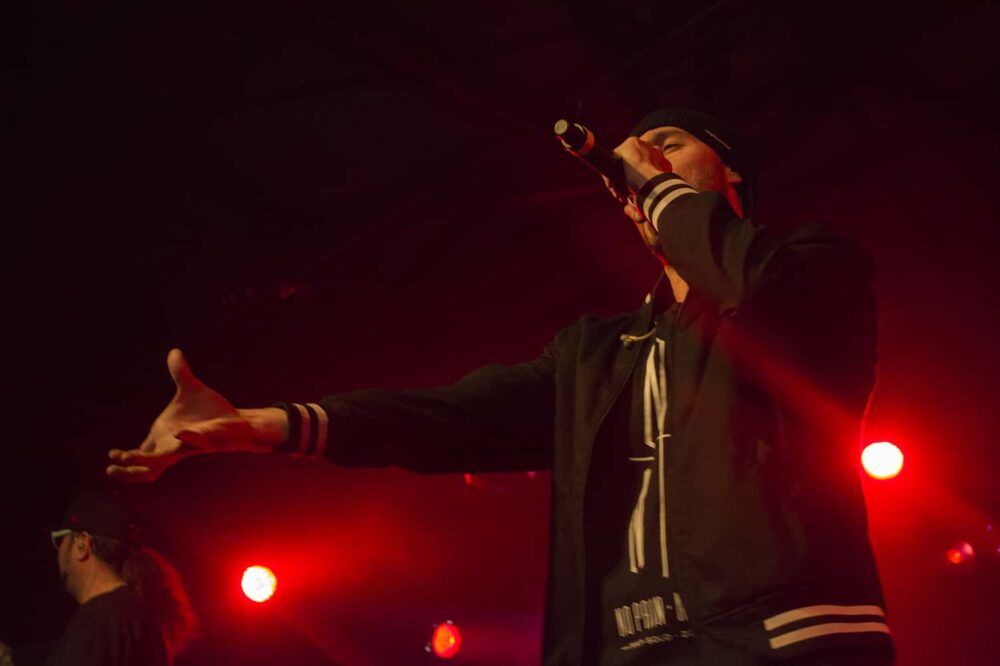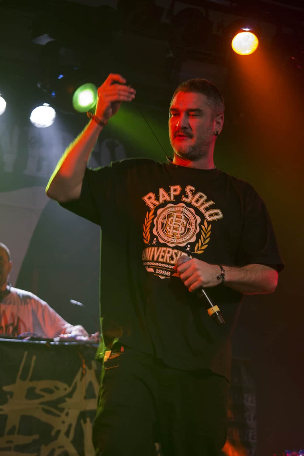 Con las manos arriba, los asistentes tiraron versos de canciones como "Asomate", "Rap Solo Universidad", "Nada Más" y "A las Cosas por su Nombre".