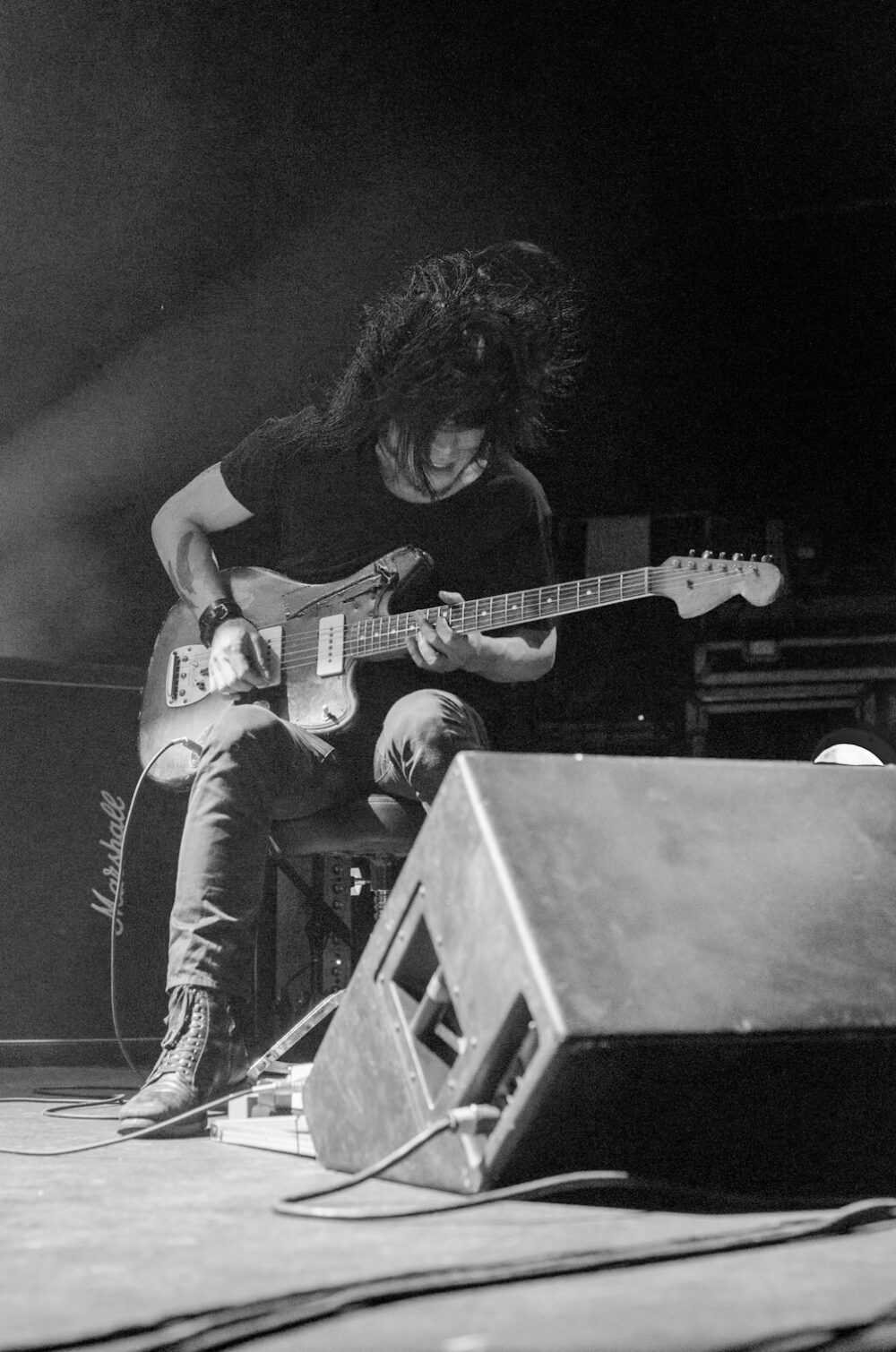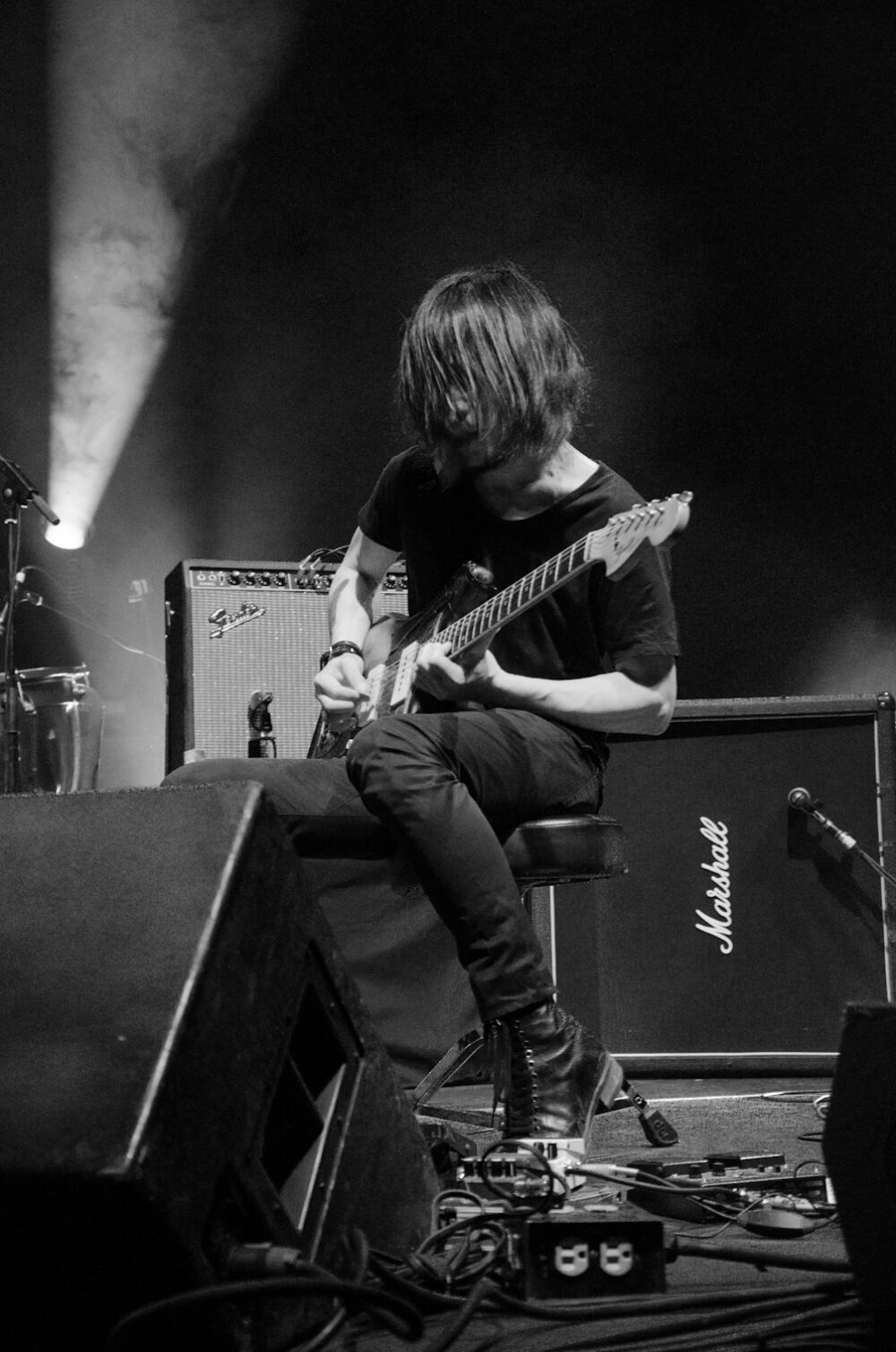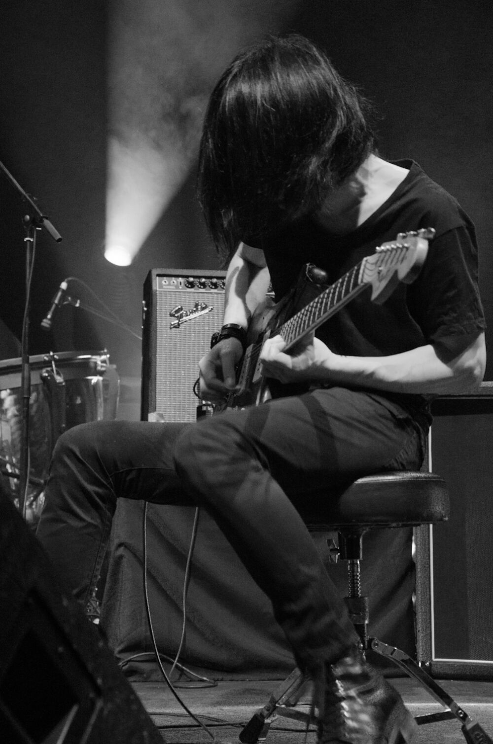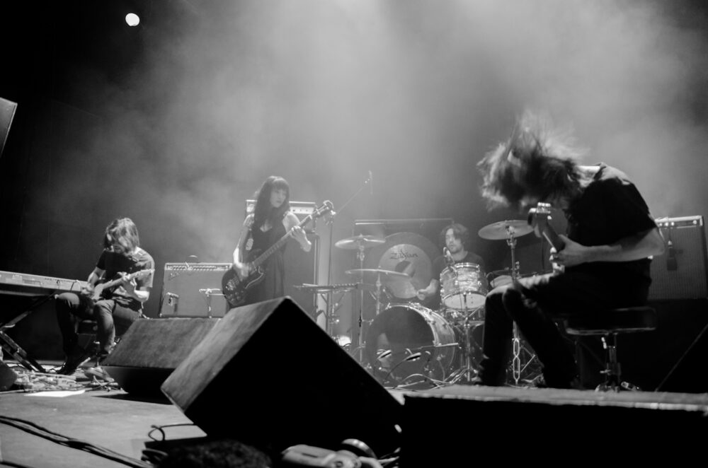Vestidos de negro, como si se tratase de una marcha fúnebre, sin decir una sola palabra y con los guitarristas Takaakira Goto y Hideki Suematsu sentados y listos para ofrecer una bella experiencia, el concierto comenzó con “Yearning”. Casi 16 minutos que definen a la perfección la formula del cuarteto japonés: primero empieza la conjunción de elementos que engancha y conmueve con melodías pausadas pero que gradualmente explotan hasta crear una catarsis con muros abrumadores e indescifrables de sonido que envuelven el recinto pero sobre todo, tus sentidos.