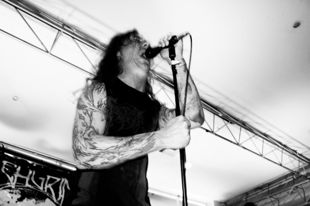 Los primeros invitados de origen extranjero, Trenchgrinder, desde Nueva York, ejecutaron sin cuartel una mezcla de death y grind pesada, rápida y ensordecedora. Algunos despistados y otros curiosos se acercaron lentamente al remolino de golpes para terminar con ganas de más, ya que fue un set relativamente corto comparado con sus antecesores. A la par de esta presentación, el primer y único intento de “portazo” fue mermado por la clausura de la entrada para evitar cualquier sorpresa. Quienes entraron, entraron.