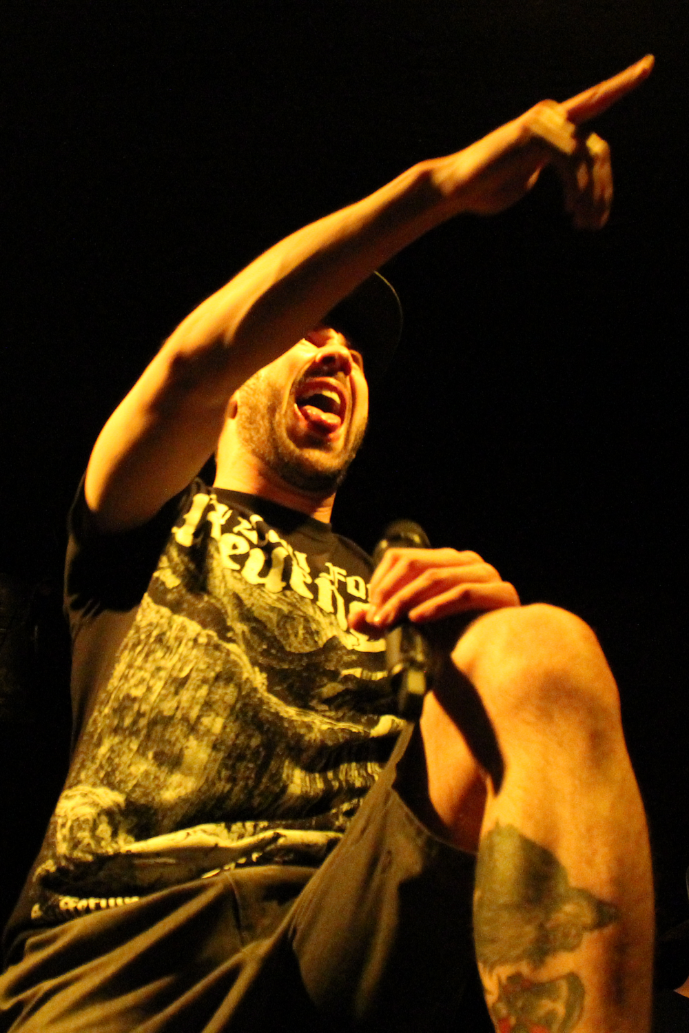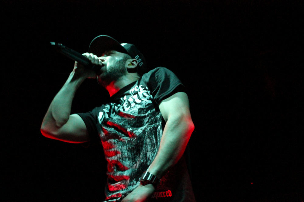 Se soltó la enorme manta que leía en grande Obey The Brave mientras la pista se preparaba. Pasadas las nueve treinta, puntualmente, se escuchó una pista pre-grabada con un tema de Usher (hip-hop para desconcertar a la muchachada) y con jerseys de basketball, bermudas, tatuajes hasta en las tripas y cara de furia, la agrupación canadiense soltó la bomba con “Lifestyle”. Open pit, circle pit, mosh y brincos a la orden, con violenta obediencia la banda obtenía lo que pedía.