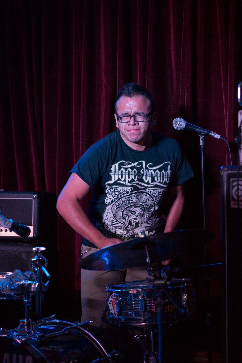 Cerca de la una de la mañana la gente comenzó a apretujarse frente al escenario; El Cejas estaba listo para dar inicio a la presentación de Calavera acompañado por una banda que contó entre sus filas a Bam Bam, baterista de Garrobos; y Karim, contrabajista de Los Hell Dandys.