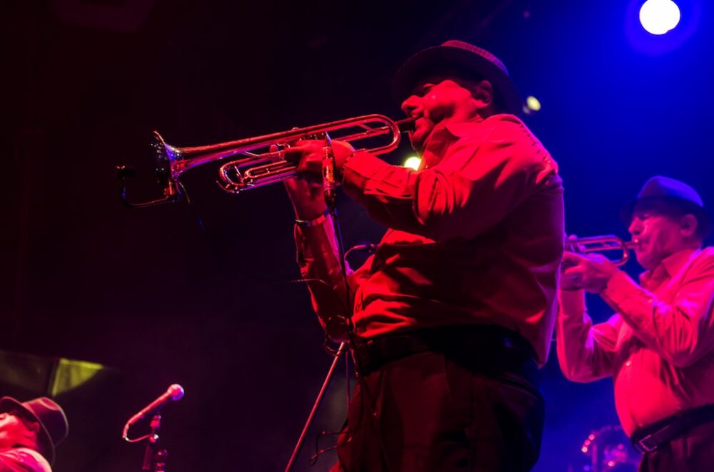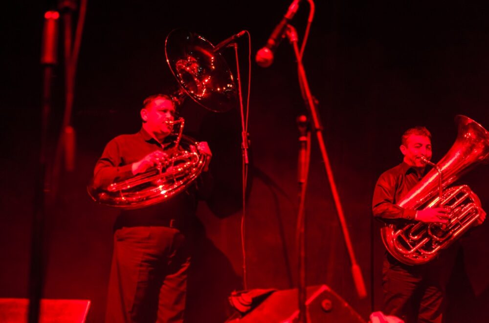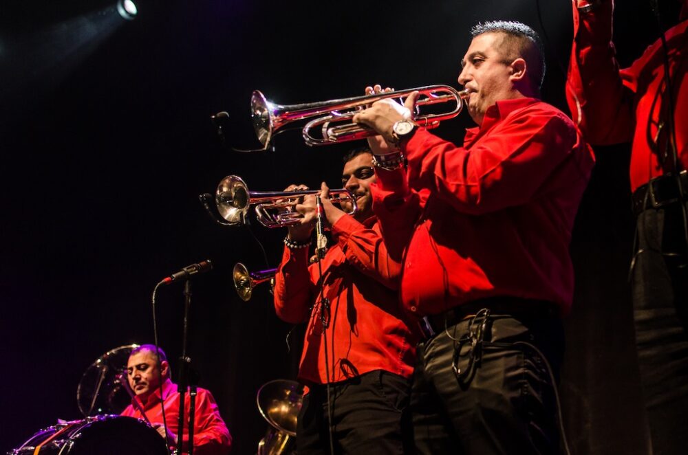 Bailarinas al estilo gitano aparecieron en el escenario mientras los integrantes de la Fanfare, vestidos de negro y rojo, inclinaban sus sombreros y lanzaban besos como muestra de agradecimiento, gestos que lograban transportar a los presentes a un ambiente familiar, como el padrino que celebra un bautizo, boda y funeral a su puro estilo y todo al mismo tiempo.