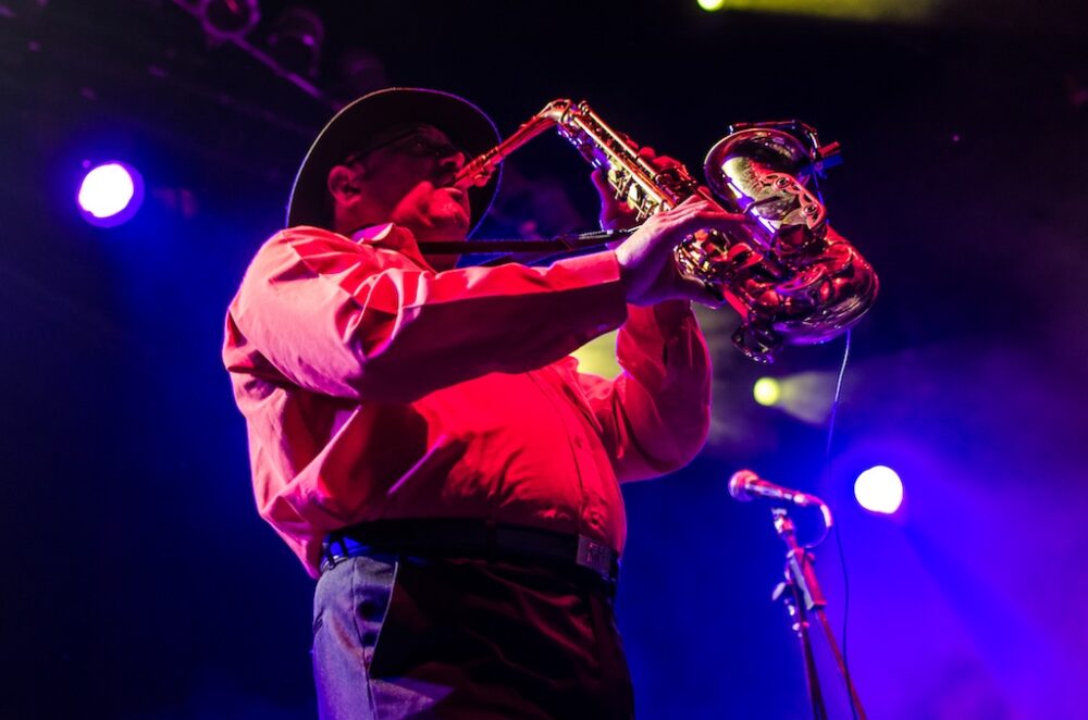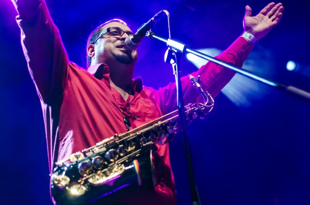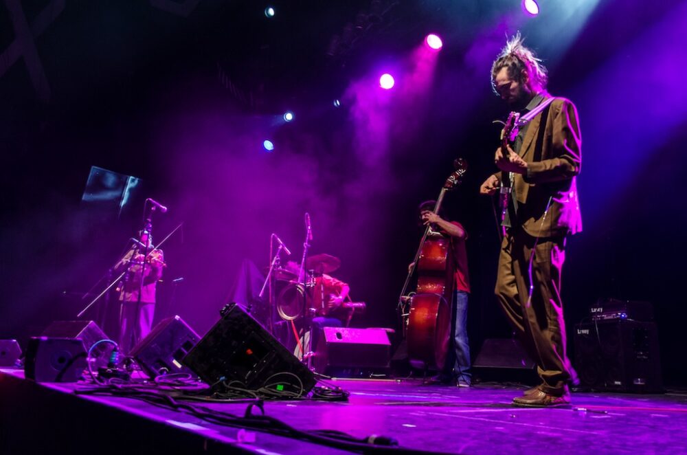 La cita era a las ocho de la noche y pocos minutos después se iluminó el escenario como si se tratara de un recital de poesía contemporánea francesa; bongos y luces rojas esperaban ansiosos al grupo abridor: Carlos Marks, cuya propuesta es digna de ponerle atención. Suenan a balkan y folclor huapangoso de tierras occidentales mexicanas mezclado con la improvisación característica del jazz; mucha técnica pero gone wild. Si fuera un baile sería zorba en drogas muy potentes y acelerado. Extraño, sí, pero fresco y divertido.