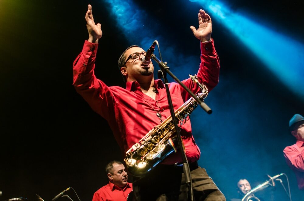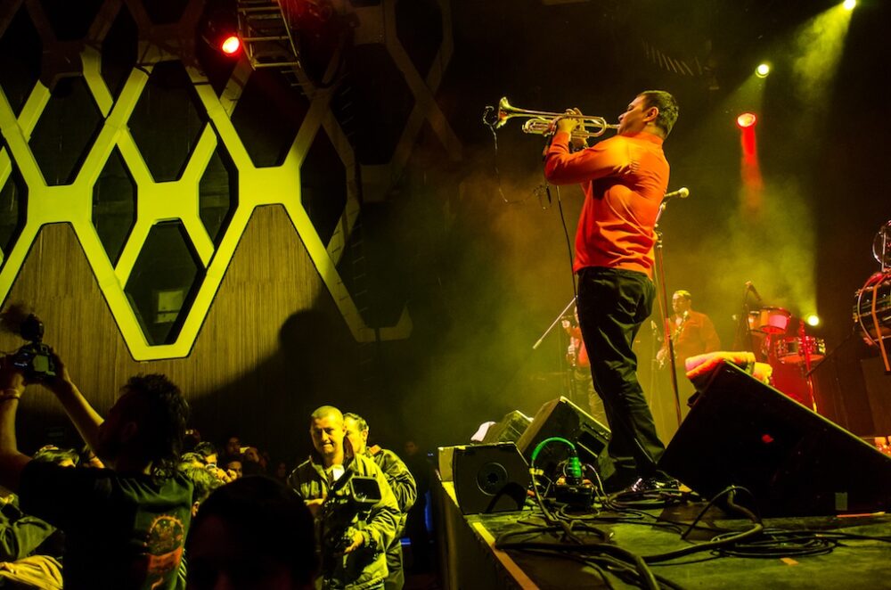 Después de cuatro canciones de larga duración se despidieron con buena respuesta del público, dando paso a que, tan solo unos minutos después, una fila de cuatro personas con los metales más grandes saliera para dar inicio a la presentación de Fanfare Ciocarlia. Poco a poco se fueron incluyendo cada uno de los doce miembros de la banda mientras iban dando forma a canciones como "Sirba de la Monastirea", "Lume Lume" y "Caravana" en versiones que aprovecharon para extender e incluir al público con gritos en rumano.