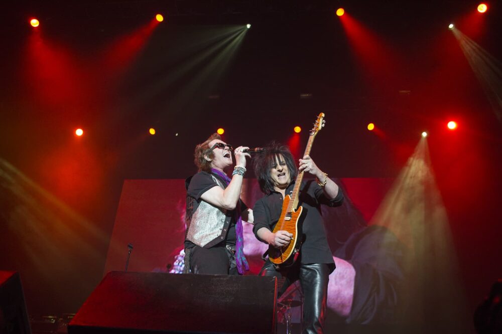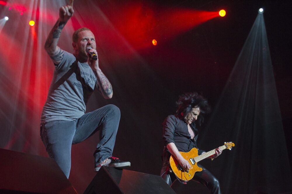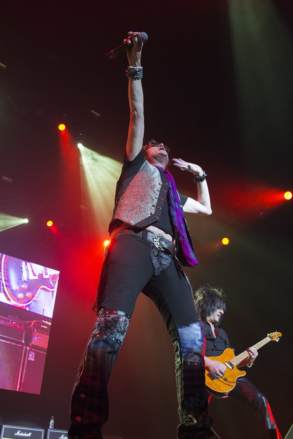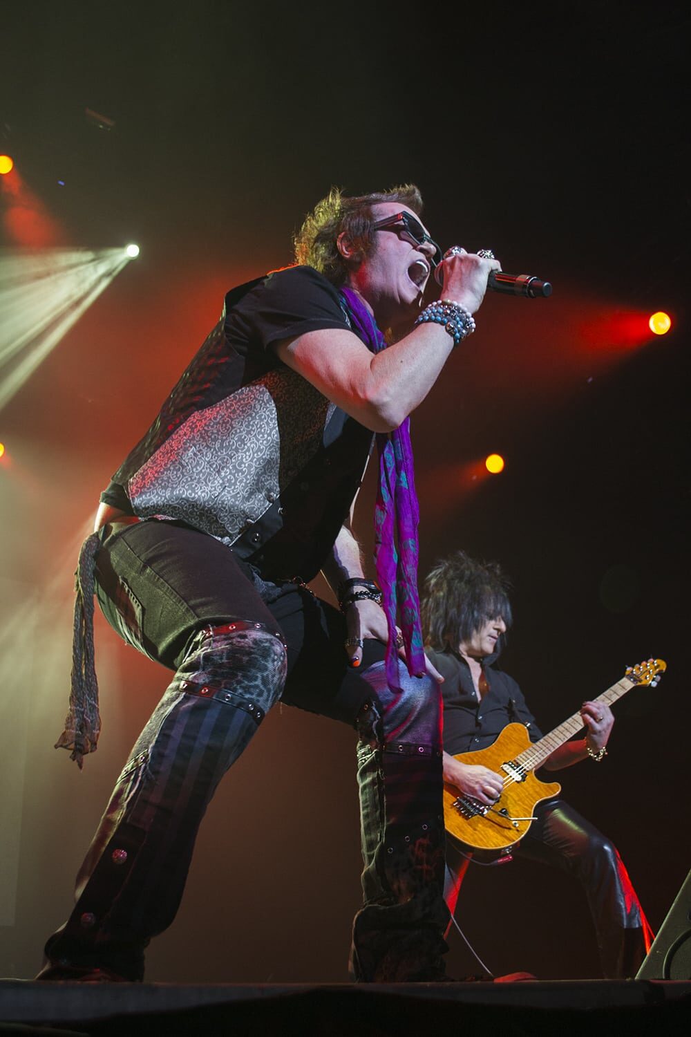 Un gra espectáculo de principio a fin. El grupo fue cambiando de alineaciones con cada canción: match 1 del grupo presentaba a Duff y Matt en la porción rítmica (los únicos inamovibles), así como Stevens en guitarra y Hughes en la voz. Empezaron con electrizantes versiones de dos clásicos de Deep Purple: “Highway Star” y “Smoke on the Water”, y como era de esperarse, aparecieron nubecitas de humo con olor dulzón al interior del Palacio. El público brindó su más cálida recepción para el cantante británico Joe Elliott, quien condujo al grupo a través de dos rolas de Leppard: “Animal” y “Pour Some Sugar on Me”.