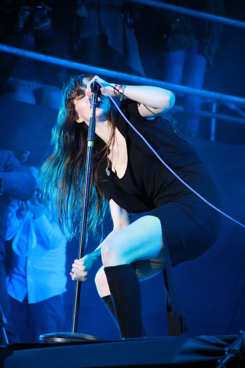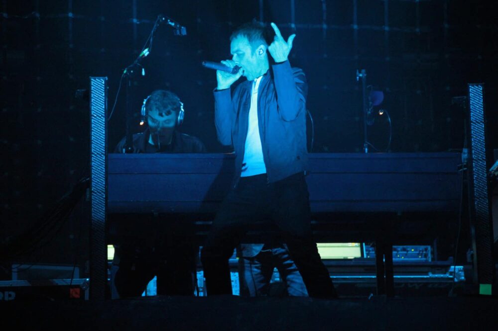 El escenario principal ya estaba preparado para Blur y fue la canción "Popscene" con la que dieron inicio a su presentación en el Vive Latino.Damon Albarn sorprendió con una matraca gigante que la hacía sonar, colocándose en el centro de escenario. "Girls & Boys" fue canción que hizo que el público despegara los pies del suelo y se pusieran a brincar y a alzar esos puños. El vocalista se desplazaba de una lado al otro del escenario y no tardó en bajar y estrechar la mano de sus seguidores en varias ocasiones. La guitarra acústica comenzó sonar con temas como "Out of Time", "Trimm Trabb" y "Caramel". También acompañaba a Blur un coro conformado por cuatro personas. La gente sacó sus celulares y cantó con todo el corazón "Tender", Damon alargó la canción y pidió al públicó cantar una vez más. No tardó en sonar "Song 2" y todos entonaban el famoso "wohooo". Parecía que Blur cerraba con "This is a Low" pero el encore lo conformó: "Under the Westway", "For Tomorrow" y "The Universal".