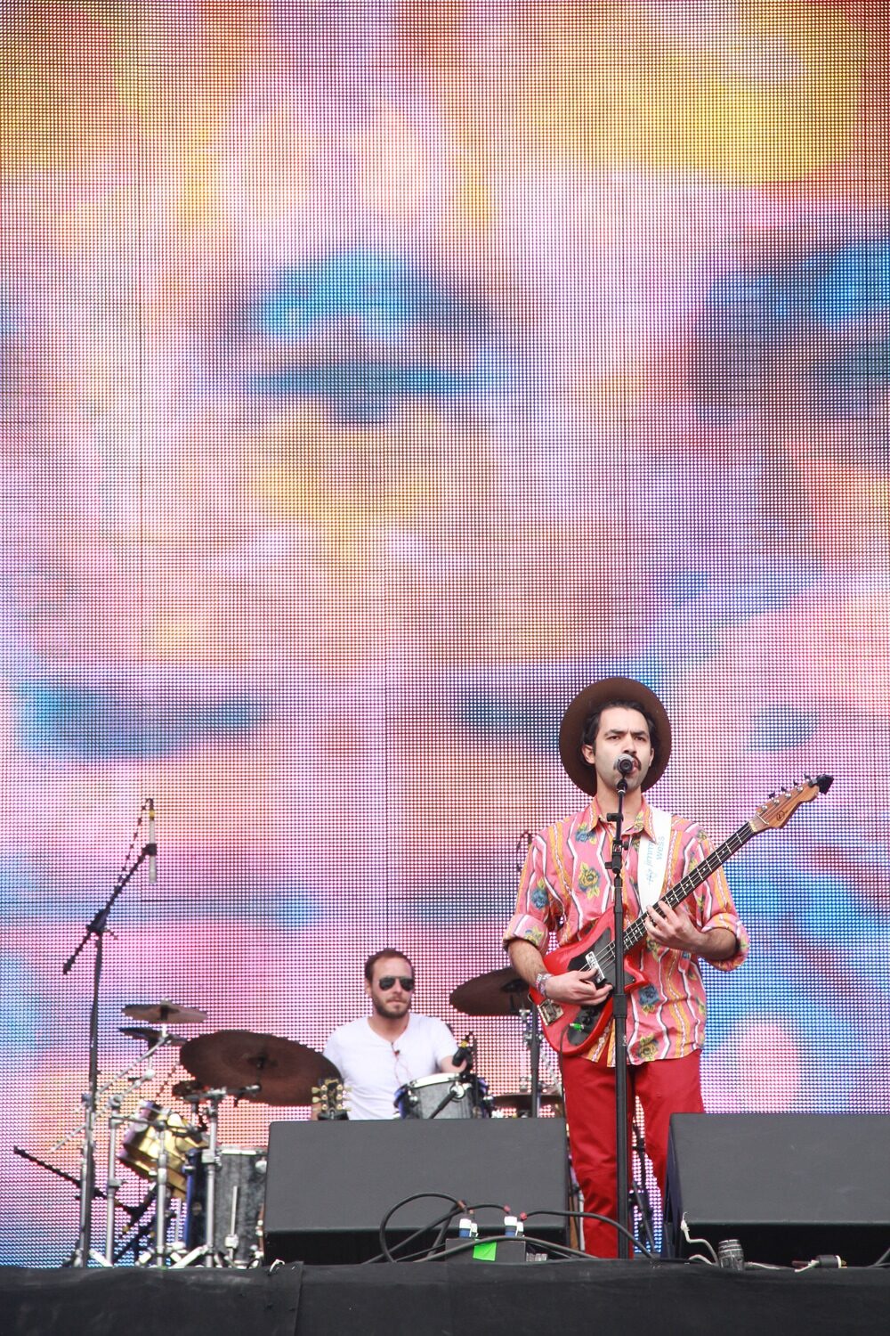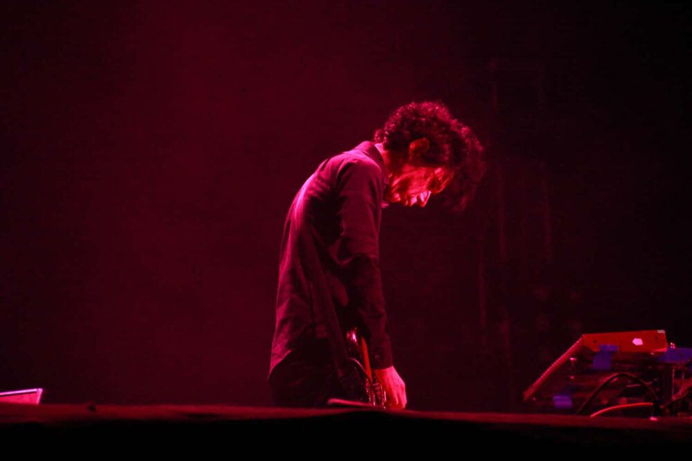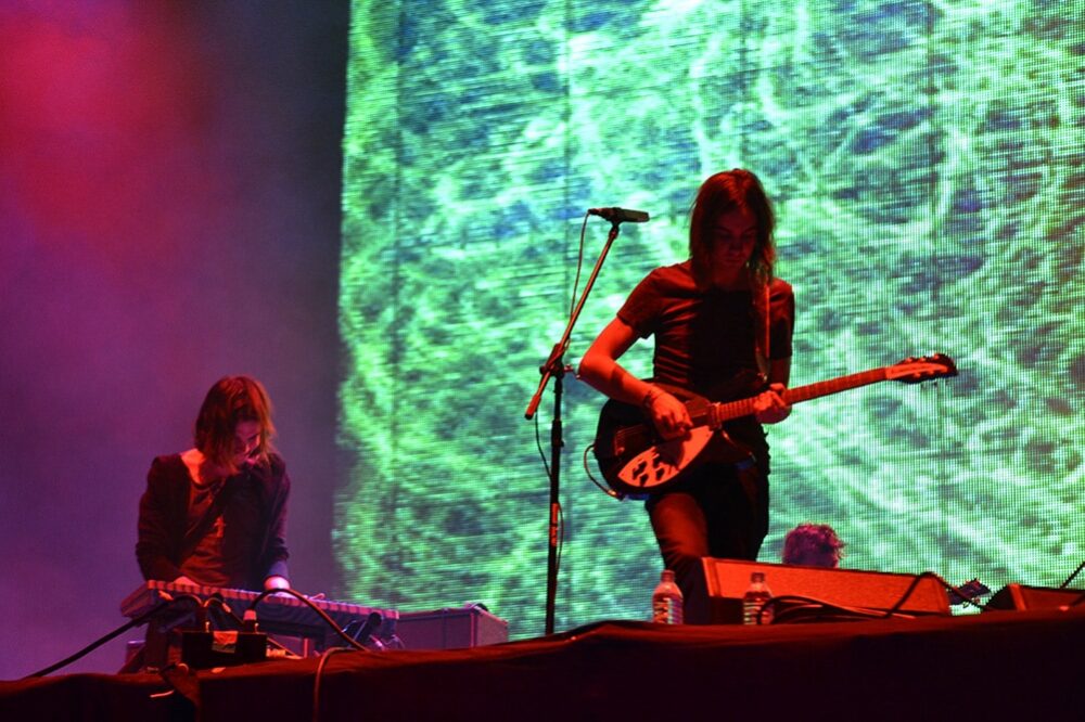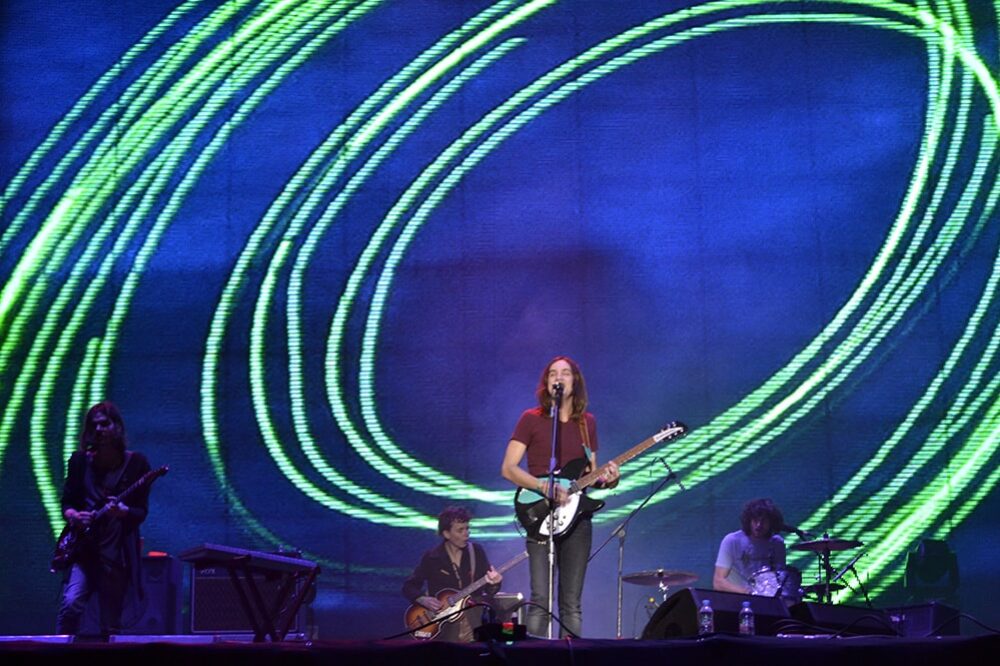 La actuación de Tame Impala tardó casi 15 minutos. La verdad es que la gente no lucía desesperada por verlos, uno que otro chiflido para que se apuraran pero hasta ahí. Por fin aparecieron los australianos con sus largas cabelleras y su rock psicodélico para interpretar temas de sus dos álbumes. Un espirógrafo girando, rayones fluorescentes intermitentes que a veces formaban un ojo, la presencia de los colores del arcoiris eran parte de sus visuales que fluían con las distorsiones de la guitarra y la presencia de la batería en temas como "Feels Like We Only Go Backwards" y "Mind Mischief". El líder de la banda, Kevin Parker, decía estar muy agradecido de tocar para el público mexicano.