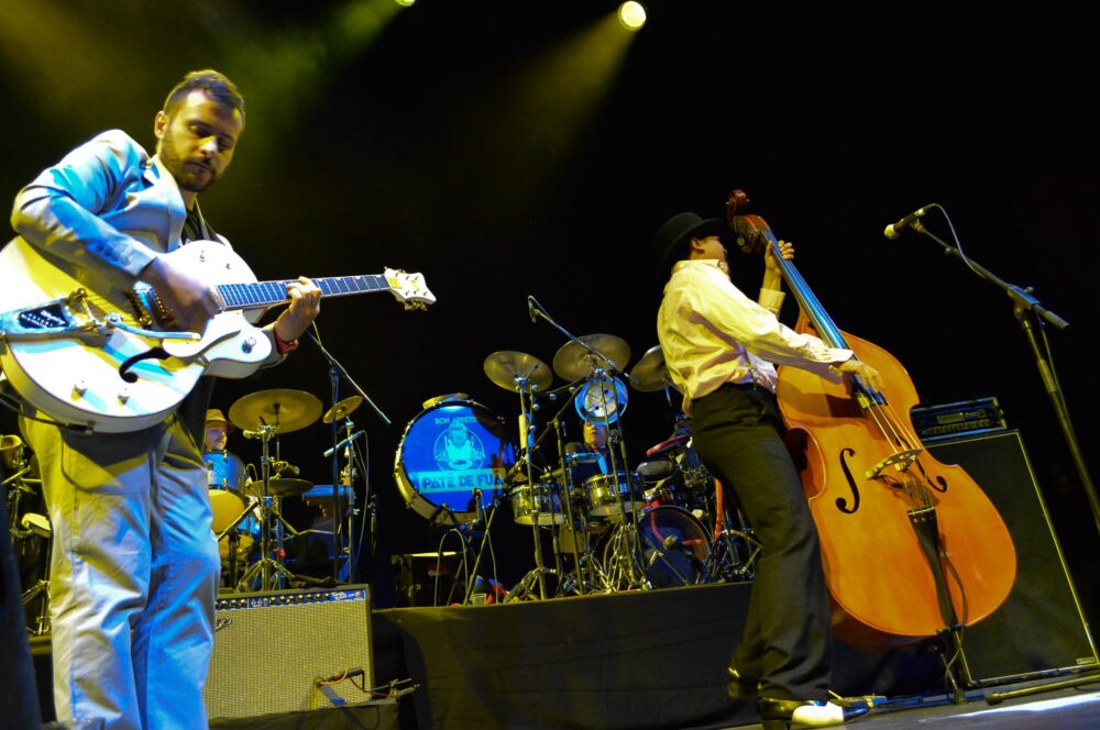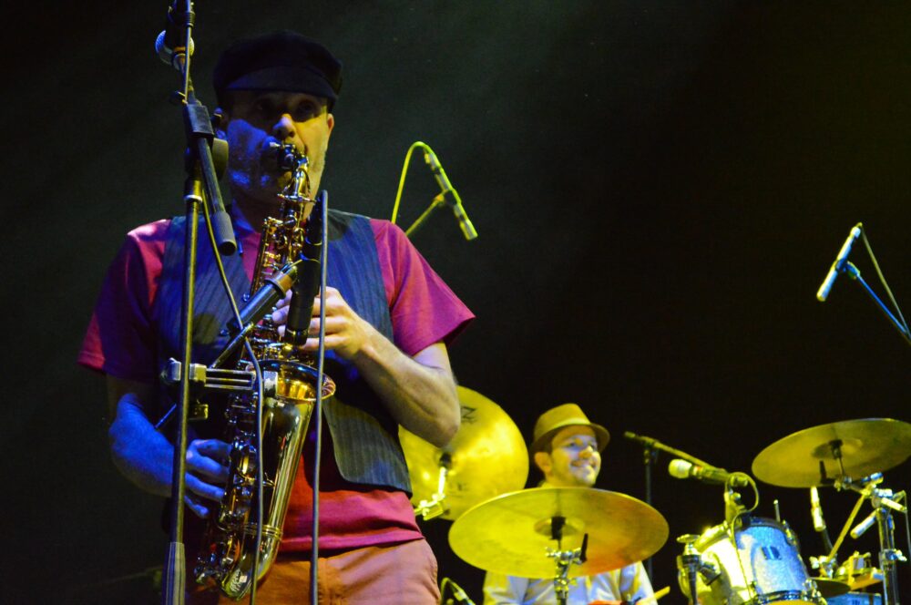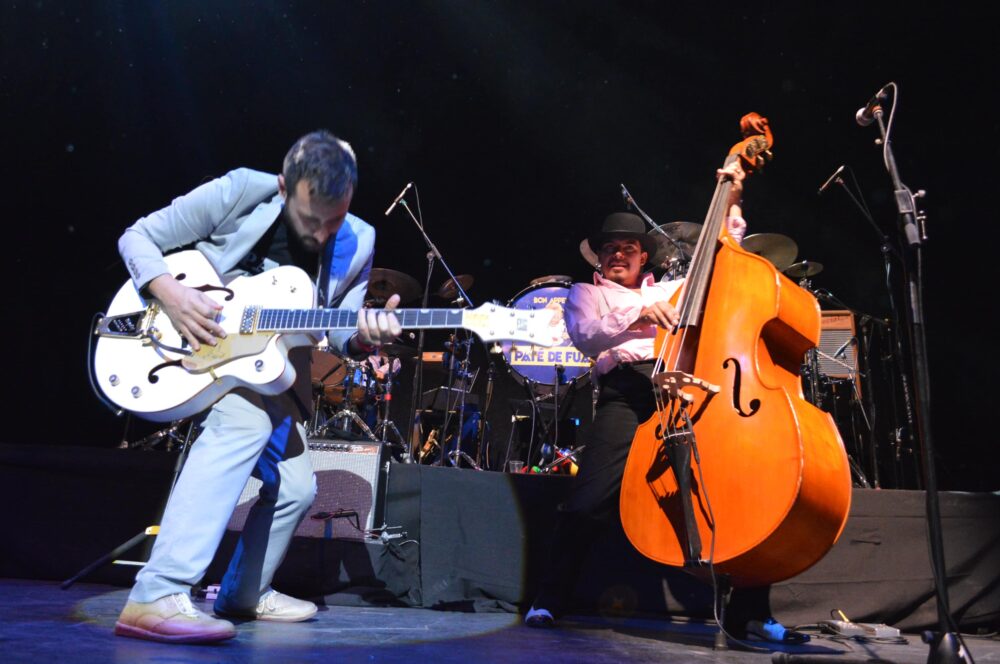 “El tren de la alegría” fue un tema que desde los primeros acordes fue ovacionado por el público, que desde temprano acudió al recinto para disfrutar de una noche bohemia. Yayo González (guitarra y voz), Guillermo Peralta (corneta, banjo, cavaquinho), Jorge “Luri” Molina (contrabajo), Rodrigo Barbosa (batería), Alexis Ruiz (vibráfono y marimba), Victor Madariaga (acordeón), e invitados en el saxofón y las percusiones, realizaron actuaciones espectaculares, encantando a la audiencia y demostrando una vez más que Paté de Fuá es una banda conformada por grandes talentos.