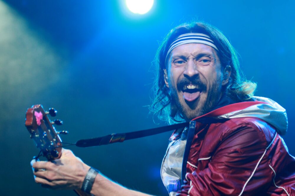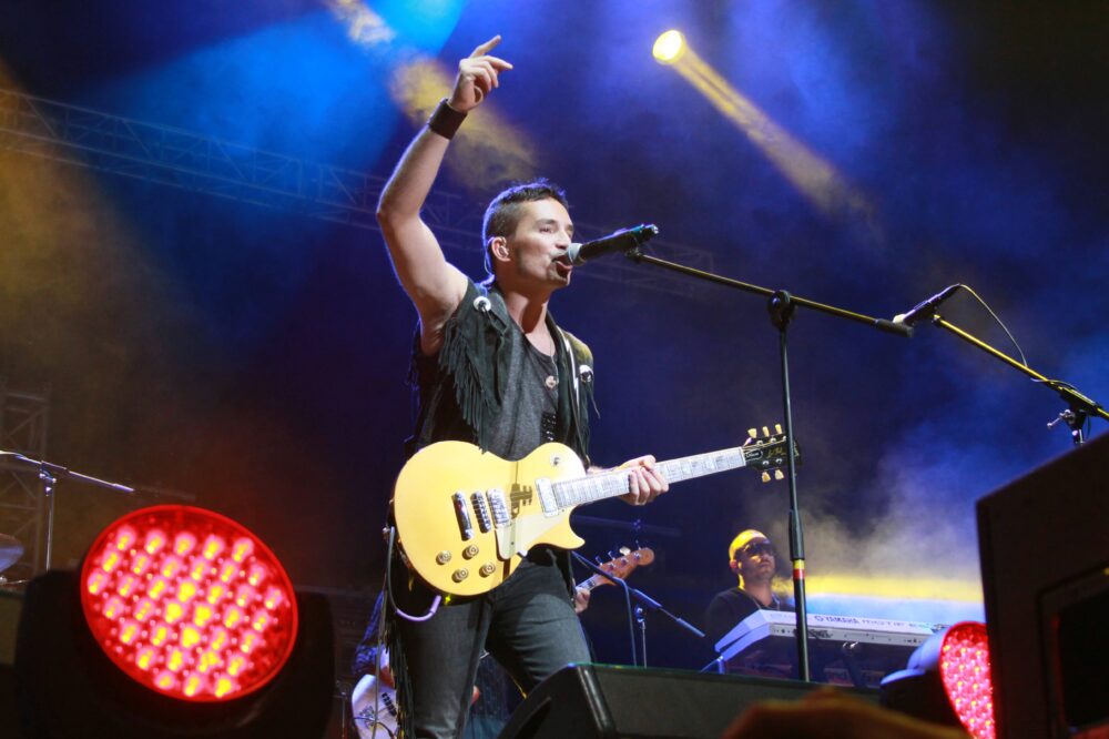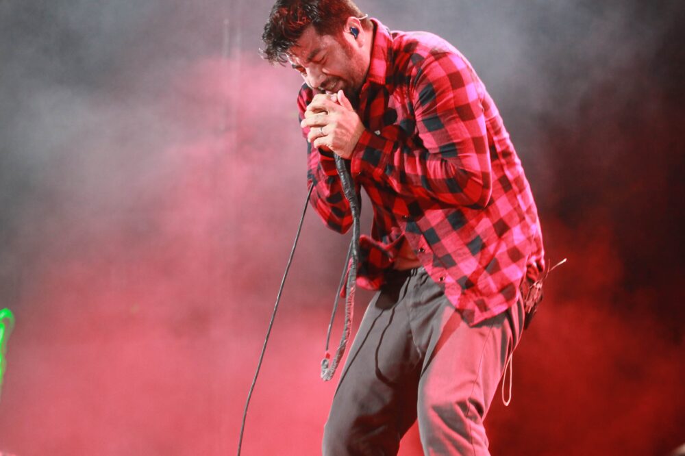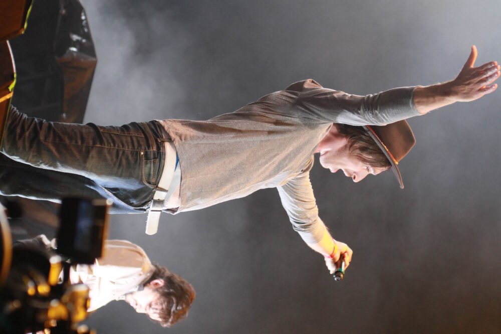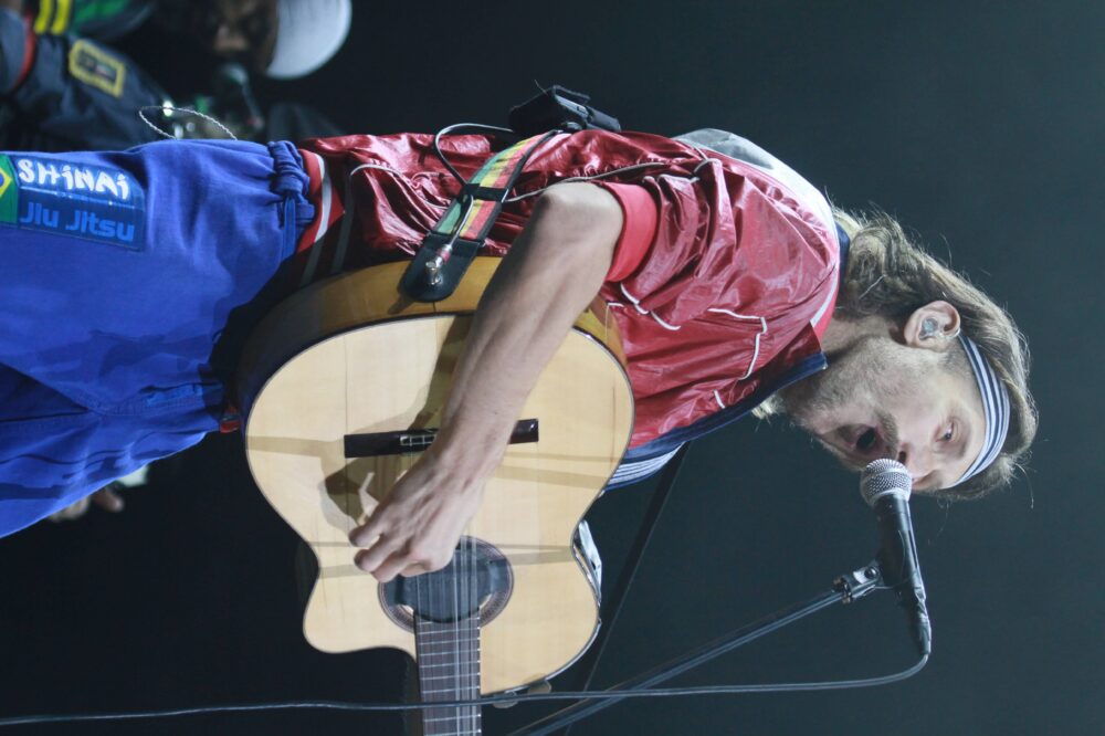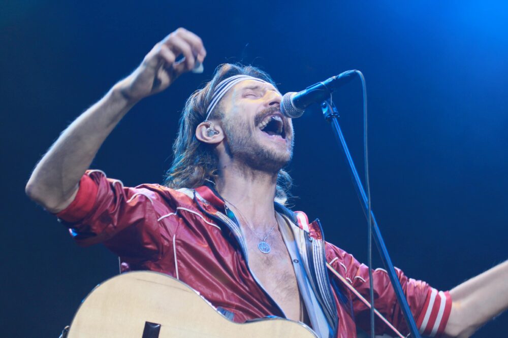 Luego del cambio de instrumentos, verificar los últimos detalles en las pruebas de sonido así como en la iluminación, las luces se apagaron y los acordes de "La Guitarra" hicieron que el coloso se transformara en un carnaval. Ahí estaban Los Auténticos Decadentes brincando en el escenario enfundados en prendas de distintos colores.