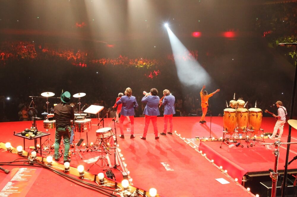Cuando el reloj marcaba la hora fijada en el boleto (8:30 pm), el audio local dio la tercera llamada, lo que hizo que miles de personas gritaran y corrieran en todas direcciones para poder llegar a sus lugares y no perderse ni un momento del concierto.